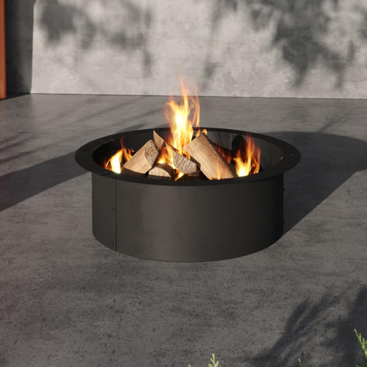 Outdoor Steel Fire Pit Ring Patio Brazier Heater Log Charcoal Round Liner Burner - Black