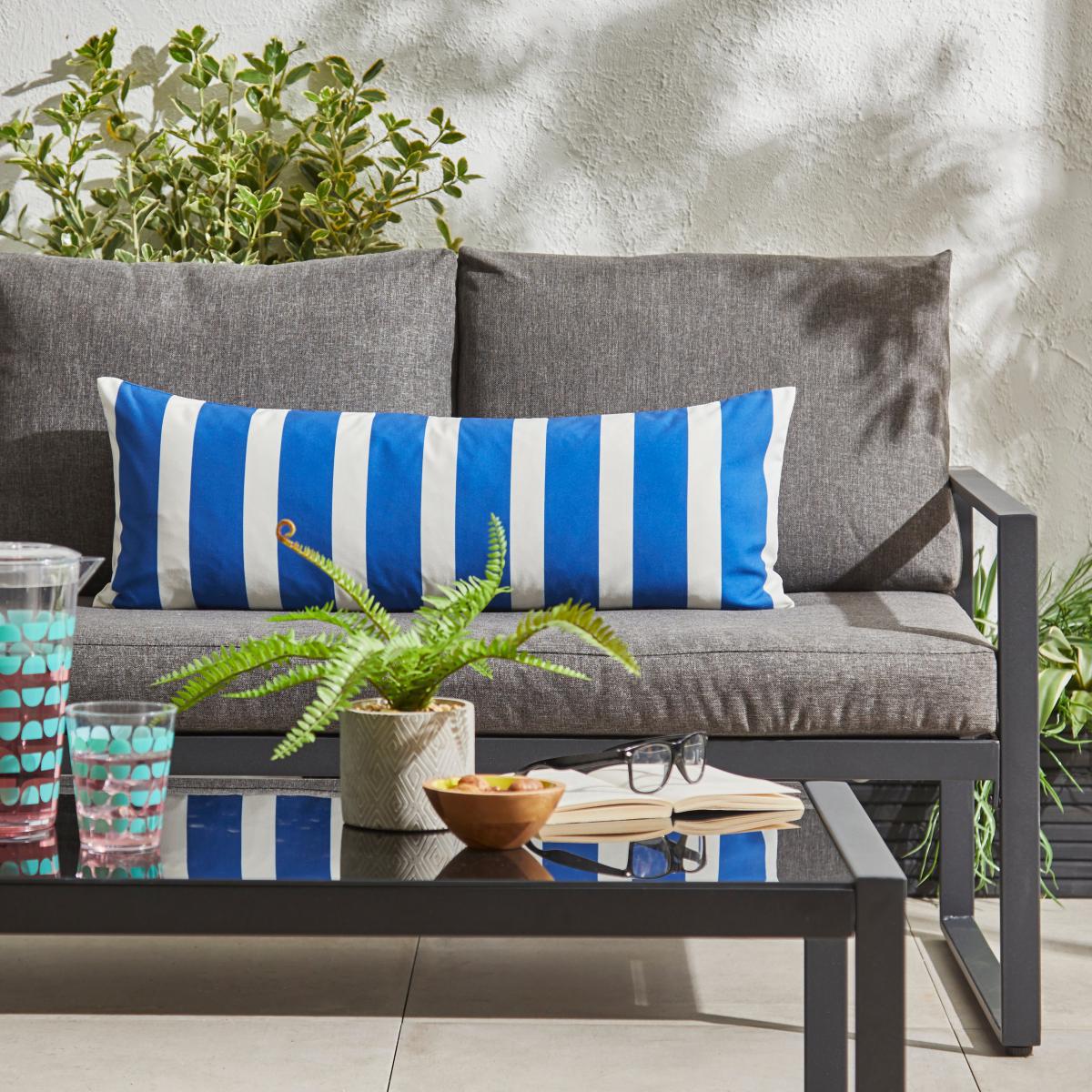 I love this outdoor stripe cushion cover for adding a fresh, classic touch to garden or patio seating. Its blue and white stripes lend a nautical vibe that works particularly well in coastal or relaxed outdoor settings, but it can also seamlessly blend into modern or minimalist exteriors with neutral tones. For styling tips, pair it with other blue or white accessories for a cohesive look, and consider layering it with textured throws or cushions in natural fabrics like linen or wicker to enhance the casual appeal. It's practical too - easy to clean and weather-resistant, making it ideal for outdoor use year-round.