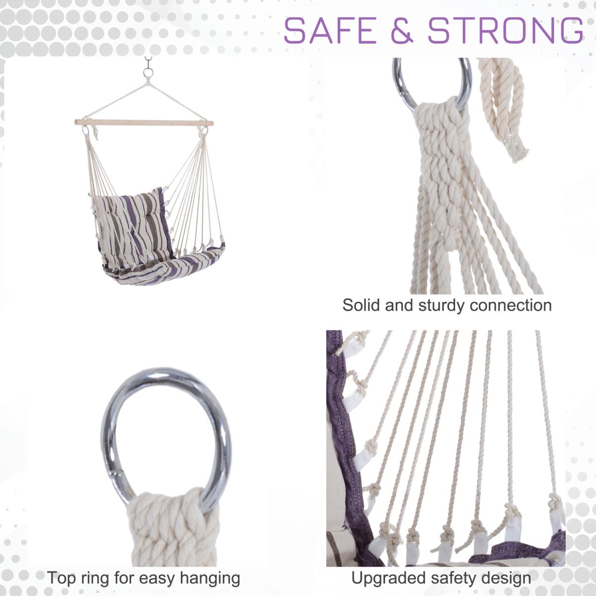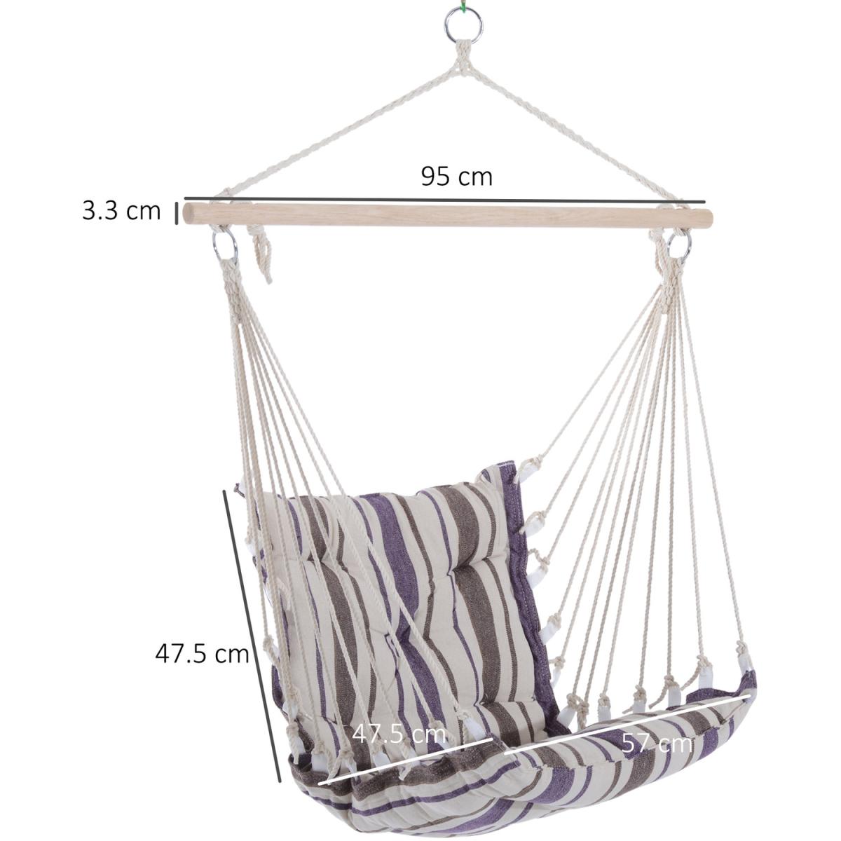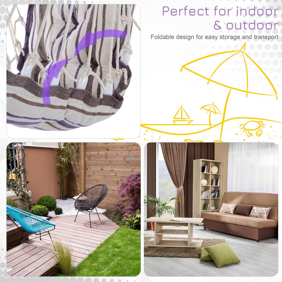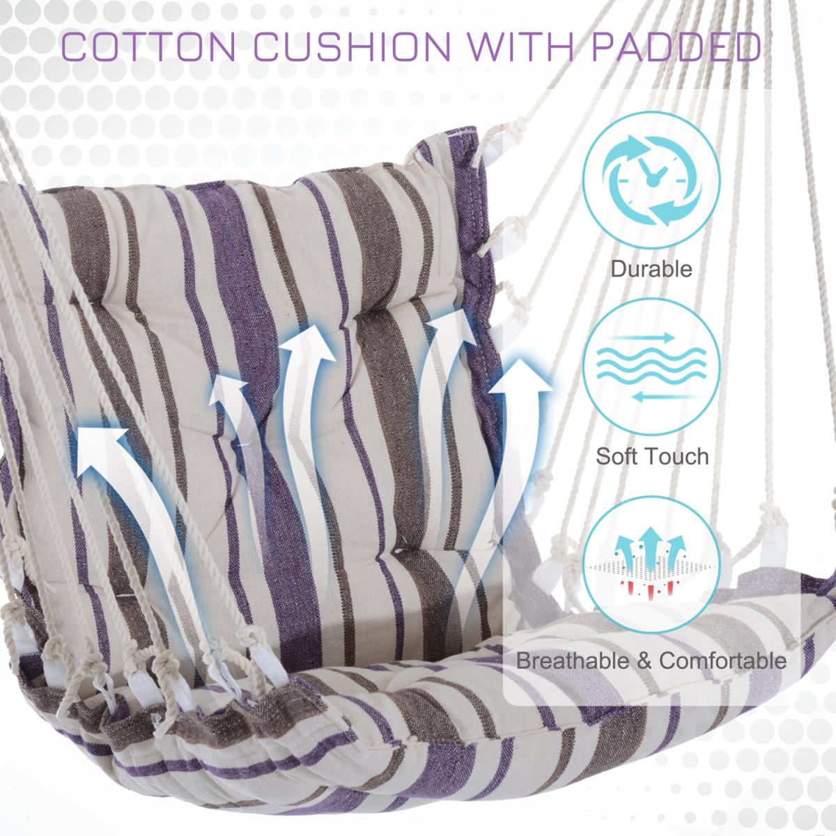 Spend your lazy day with Outsunny's swing chair! This comfortable hanging chair in vibrant colour offers you great relaxation and makes an ideal addition to any outdoor vacation, such as camping, beach or mountain trips. It comes with a firm cotton rope and solid hardwood which can hold up to 105kg. The thick padded seat and back support allow extra comfort in your seating experience. Stylish and functional, this swing chair will surely be your companion in your leisure time!