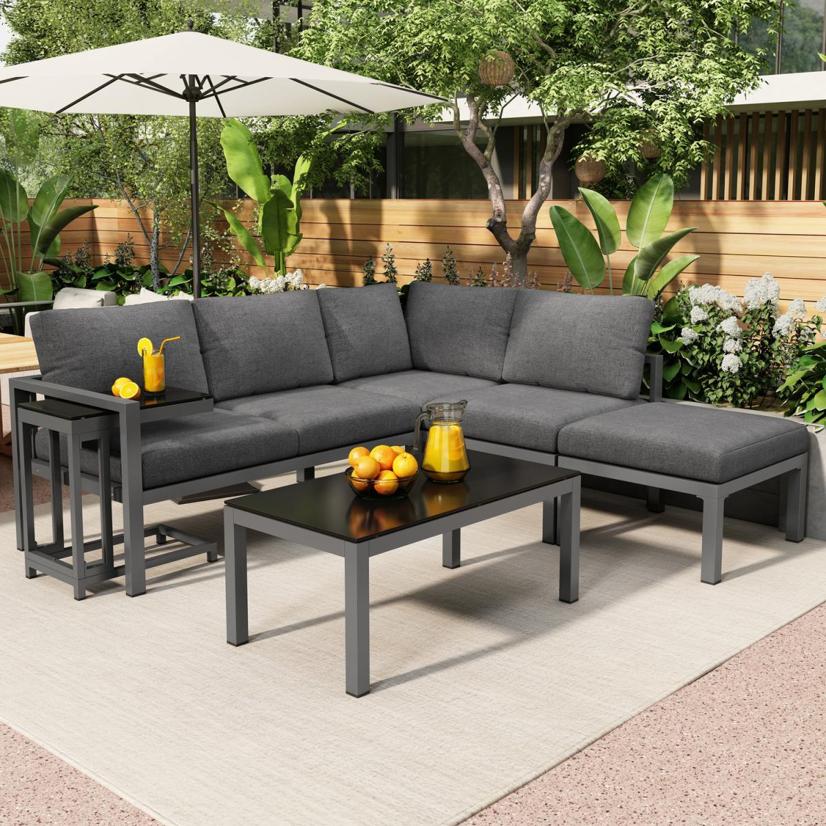 Outdoor Terrace Lounge Sofa Set with Coffee Table - Grey