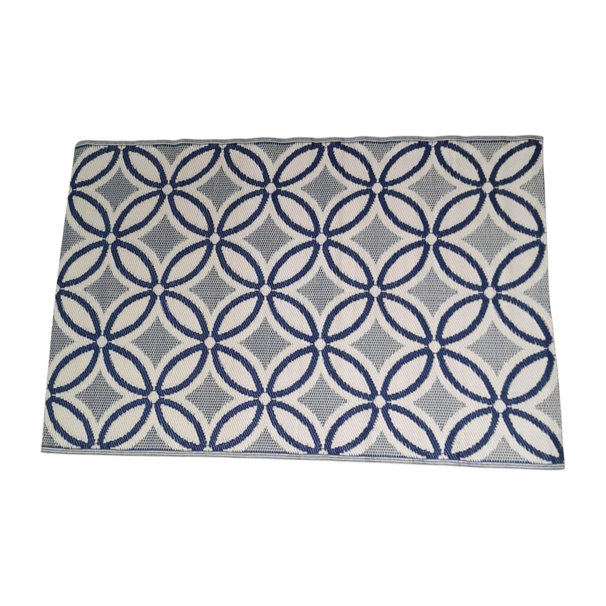 Decorate your outdoor space this year with this stylish outdoor rug. The geometric pattern is reversible and will bring two different attractive looks to any seating area whether it's for the garden, patio or balcony. The rug is made from polypropylene and the structure of the mat provides a smooth surface ensuring not to scratch any areas. The mat is also weather resistant and durable with UV protection to maintain that elegant look without fading from the sunlight. It is recommended to keep the rug indoors during the winter months to provide longer usage.