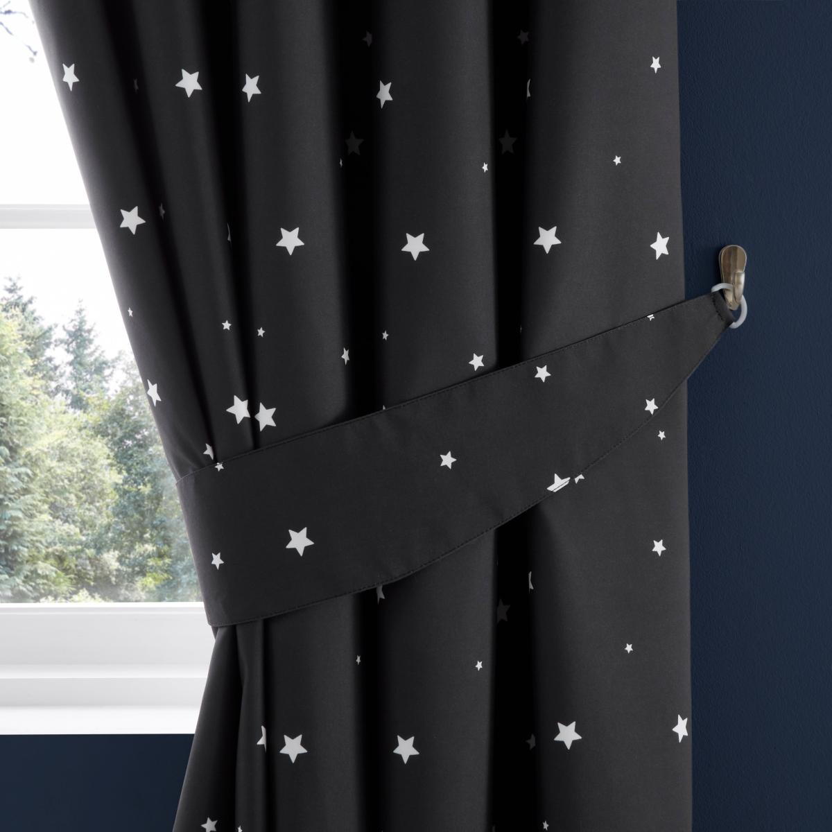 Decorated with an array of stars, these curtains will bring space right into your child's bedroom. The easy-care polycotton face fabric has been lined with a blackout lining that will help reduce sunlight entering a room, perfect for keeping your little one's room dark during the daytime. The curtains are then finished with a smart eyelet header that is great for use with a pole. These curtains feature a thermal coating and help to insulate your home through all seasons by blocking external heat in summer and prevent cool draughts in winter while providing added privacy. Coordinating bedding is available in the Outer Space range. MADE IN GREEN by OEKO-TEX® is a unique product label to trace the countries and production facilities - search the product label for more information.