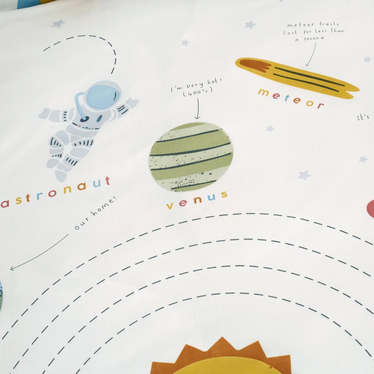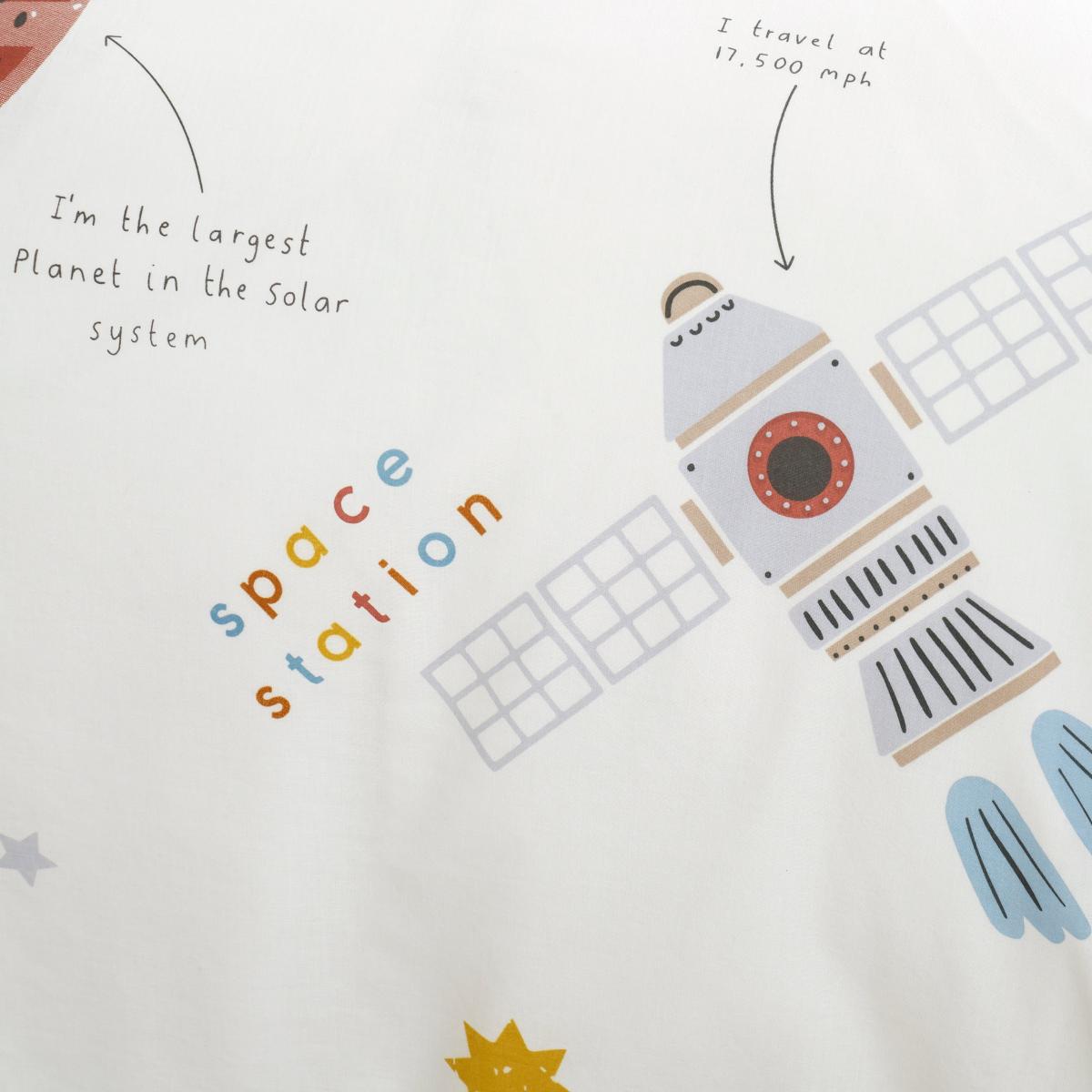 I love this space-themed set for its playful yet contemporary design, making it a fun addition to any child's bedroom. Its neutral tones with subtle pops of colour allow it to seamlessly fit into Scandi-inspired interiors, especially when paired with soft, natural textures and minimalistic furniture. Practical styling tips include layering with cosy blankets and coordinating simple cushions to create a welcoming, balanced look. It's also worth pairing it with light wood or pastel accents to enhance its clean, modern vibe while keeping the space easy to update as tastes evolve.