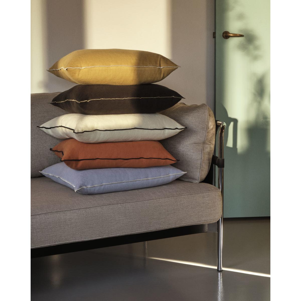 The Outline cushion features a classic design with a touch of contemporary colour. Crafted from a cotton/linen blend, it has a piped border in a contrasting colour. This cushion will elegantly decorate a bed or sofa. The cushion’s high-quality fabric and exceptional finishes are typical of the Hay Textile spirit.