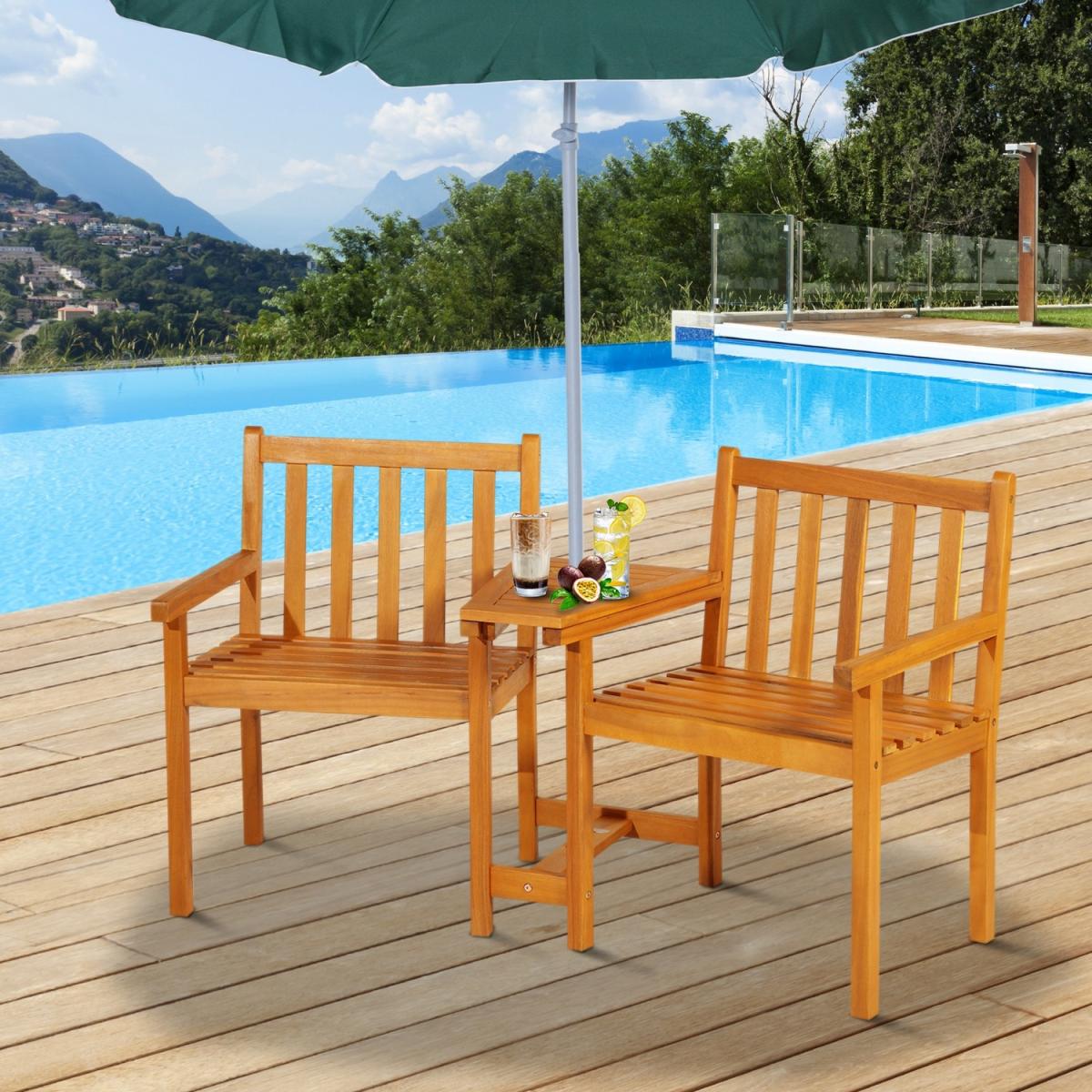 Outsunny 2 Seat and Table Bench Duo Acacia Wood - Red Brown