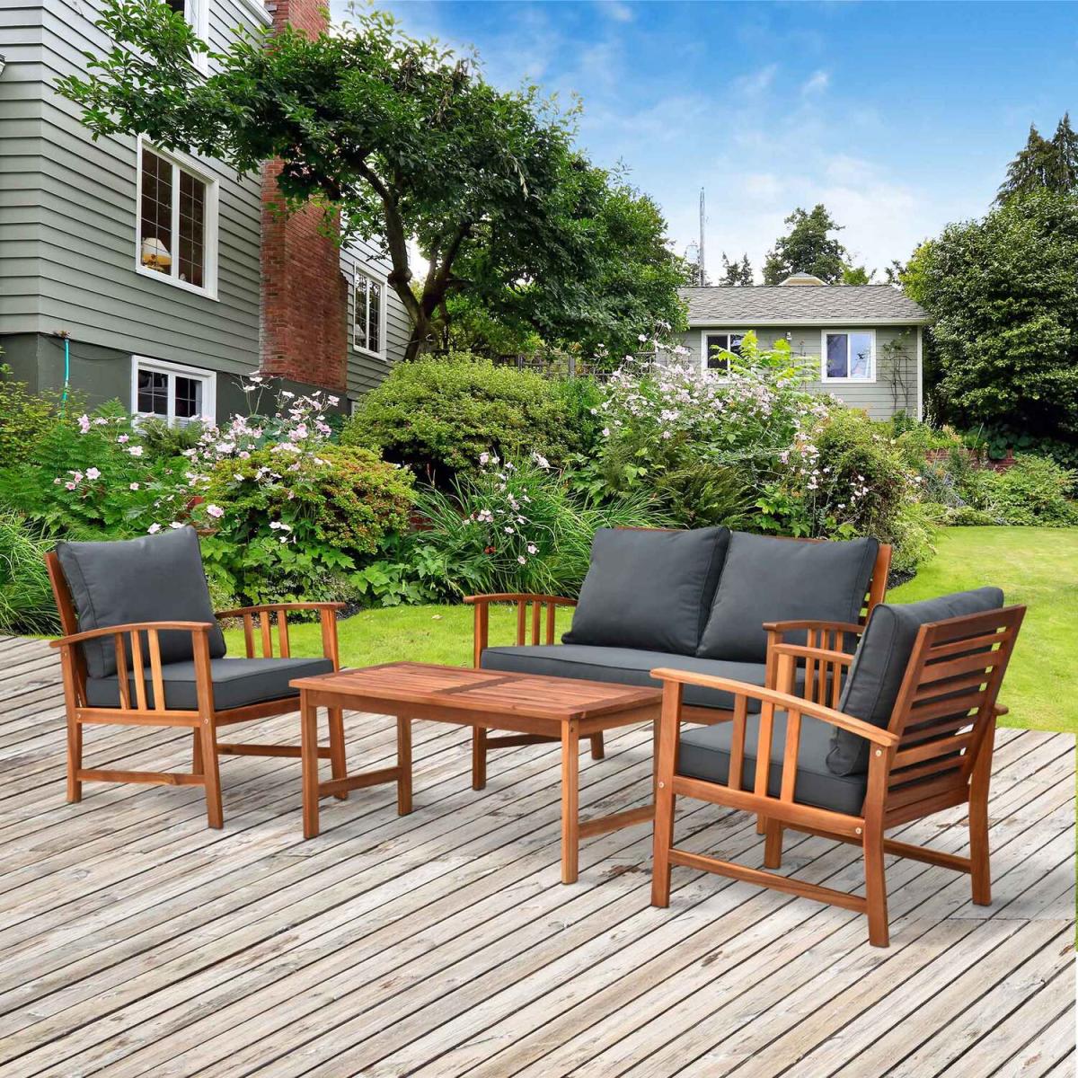 Outsunny 4-Seater Table Chair Set Chat - Natural Wood Colour, Dark Grey