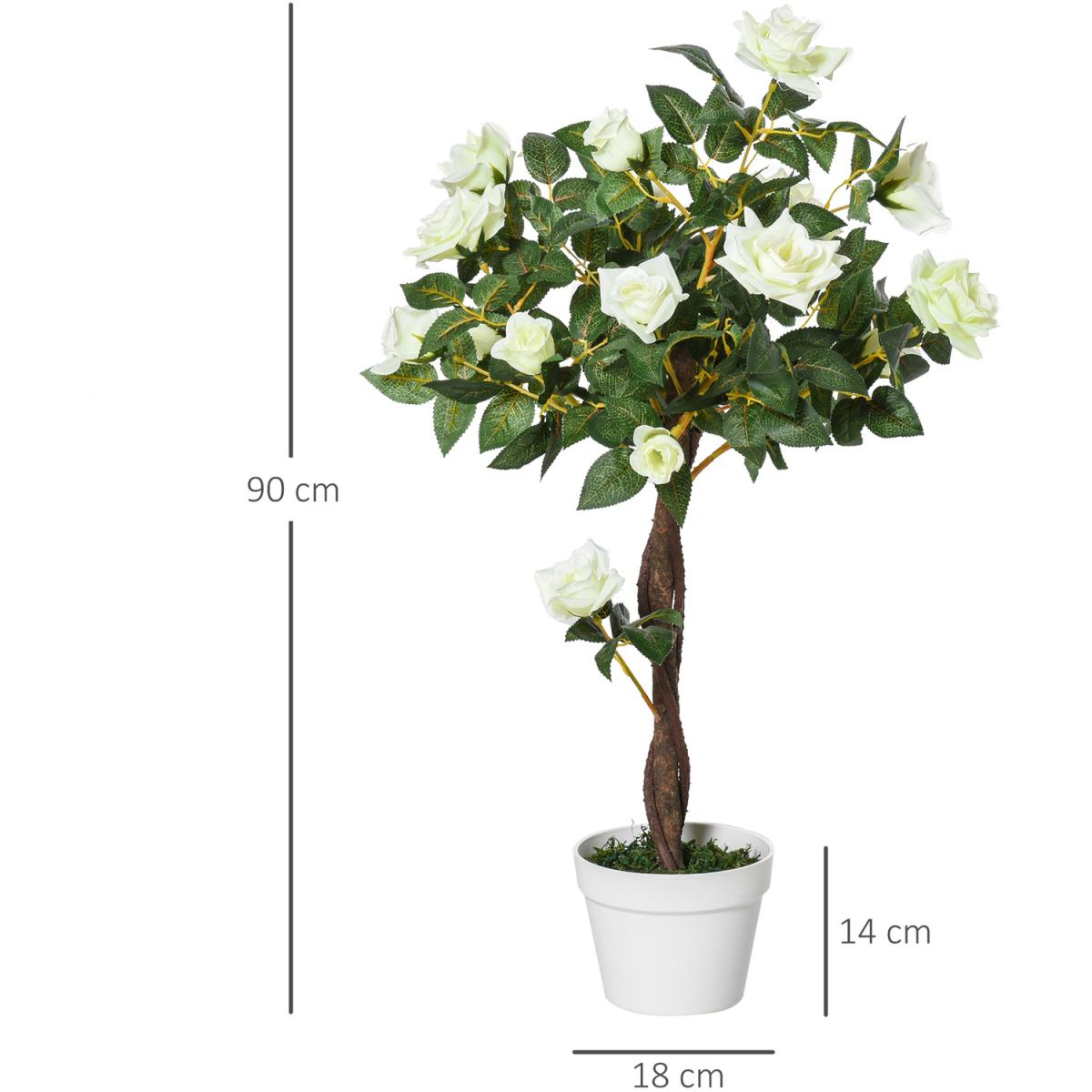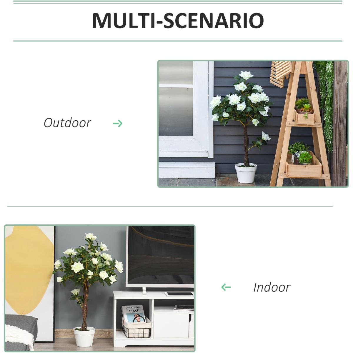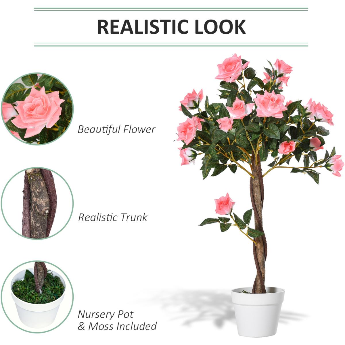 Bring bright and beautiful colour into home and outdoors areas - without the stress of upkeep. Choose this faux Rose plant from Outsunny to breathe life into your space this season and beyond. Made from quality plastic and packed with 350 leaves and 21 flowers, this faux plant is extremely realistic to look at and touch, making it easy to mistake it for a real plant. It comes in its own pot, which is filled with grass-looking cement soil so it stands upright all day and night long. To use, simply unpack and place wherever you see fit. It's great for both home and commercial use.