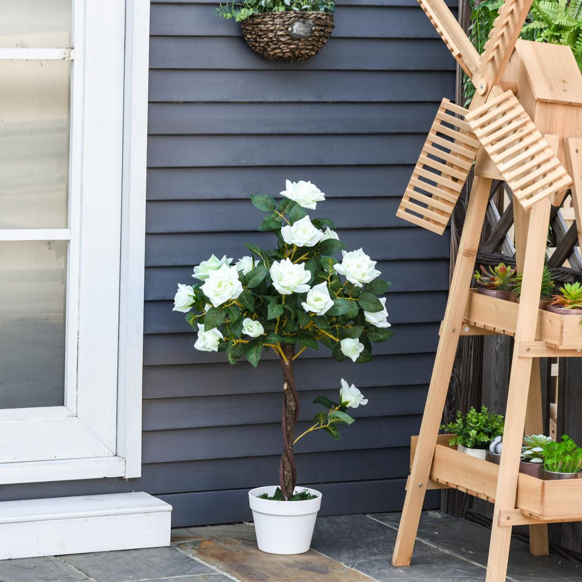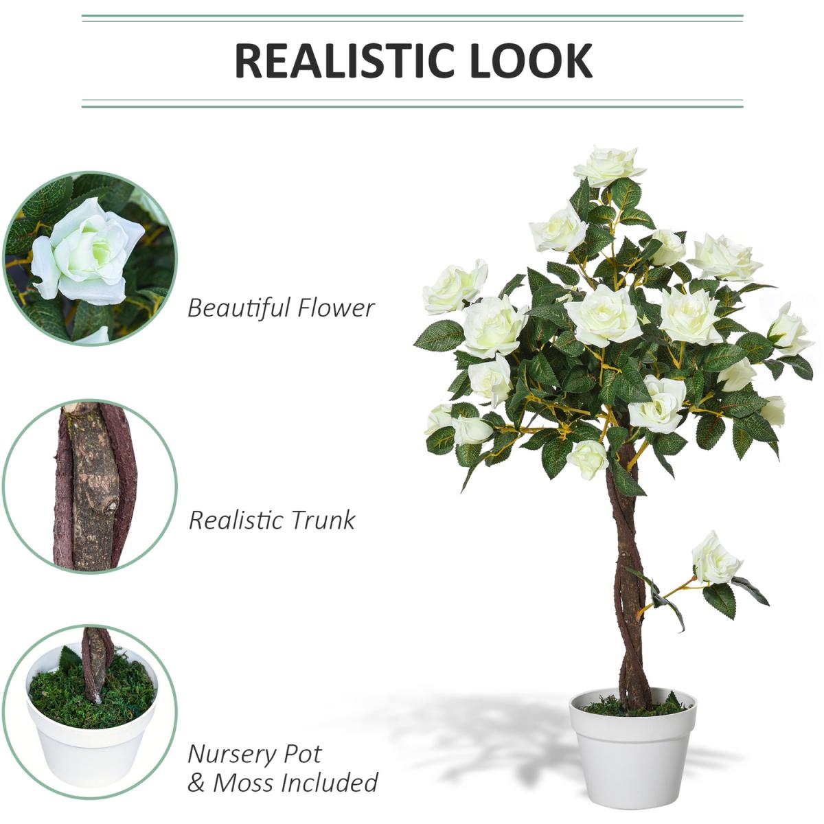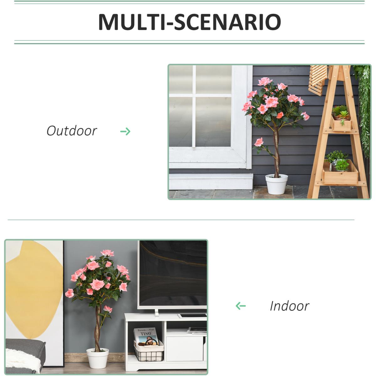 Bring bright and beautiful colour into home and outdoors areas - without the stress of upkeep. Choose this faux Rose plant from Outsunny to breathe life into your space this season and beyond. Made from quality plastic and packed with 350 leaves and 21 flowers, this faux plant is extremely realistic to look at and touch, making it easy to mistake it for a real plant. It comes in its own pot, which is filled with grass-looking cement soil so it stands upright all day and night long. To use, simply unpack and place wherever you see fit. It's great for both home and commercial use.