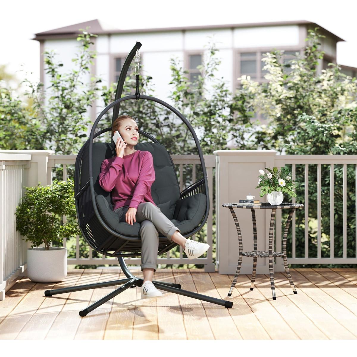 Outsunny Garden Hanging Egg Chair with Stand - Dark Grey
