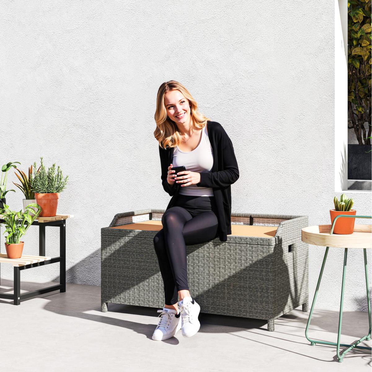This rattan storage box with seating for two persons is a great addition to your outdoor living. Made using an aluminium frame and covered with PE rattan, it will not rust and fade. With seating for 2 and a storage box underneath to keep the seating cushion when not in use. Use the storage area to keep magazine and books handy, while enjoying the outdoors. Outsunny Rattan Storage Cabinet Box - Grey