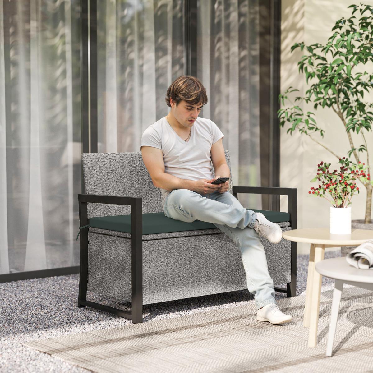 Outsunny Rattan Storage Garden Bench with Inner Bag and Cushion - Grey