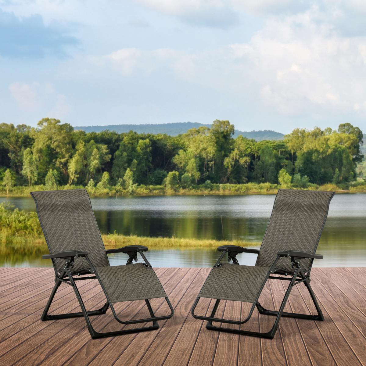 Outsunny Set of 2 Zero Gravity Wicker Lounger Chair - Grey