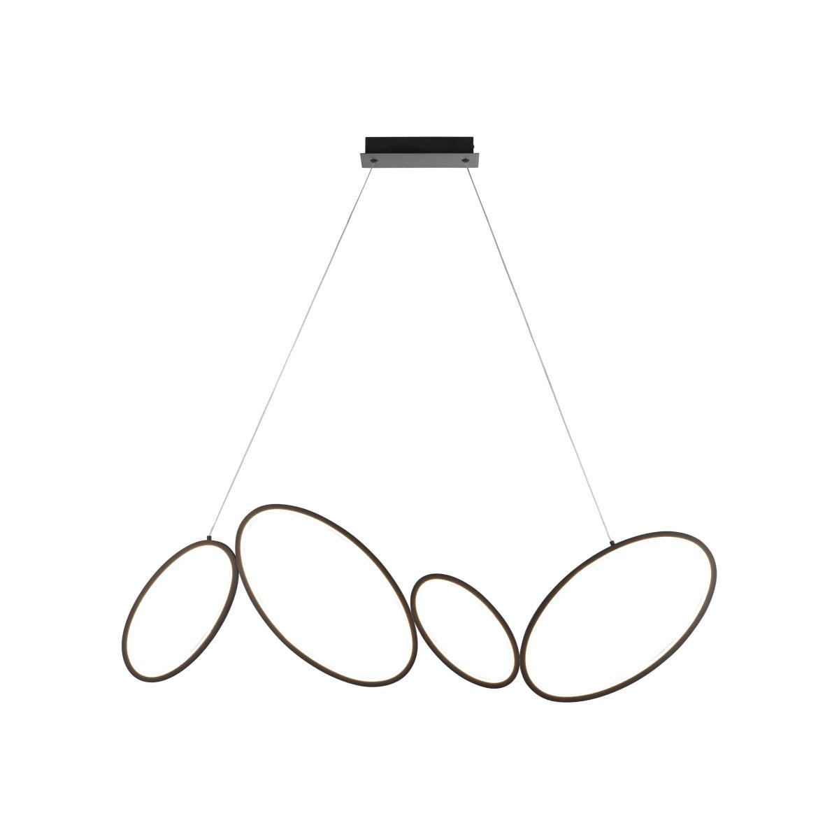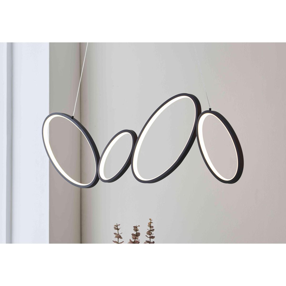 Simple and unique, the Ovals four-light pendant makes a stylish statement. It’s an eye-catching centrepiece for any room. Why you'll love it. A timeless feature suits every style of living space. Contemporary designer feel. Oval silhouettes are the shape of things to come. The textured black finish creates a luxurious monochrome look. Made with care for Furniture Village. What you need to know. Steel base. Textured silicone finish. 4 x 10.75W LED tape module (SMD 2835) required. Dimmable. Dimensions. Width: 108cm (43 inches). Depth: 8cm (4 inches). Height: 50cm (20 inches).