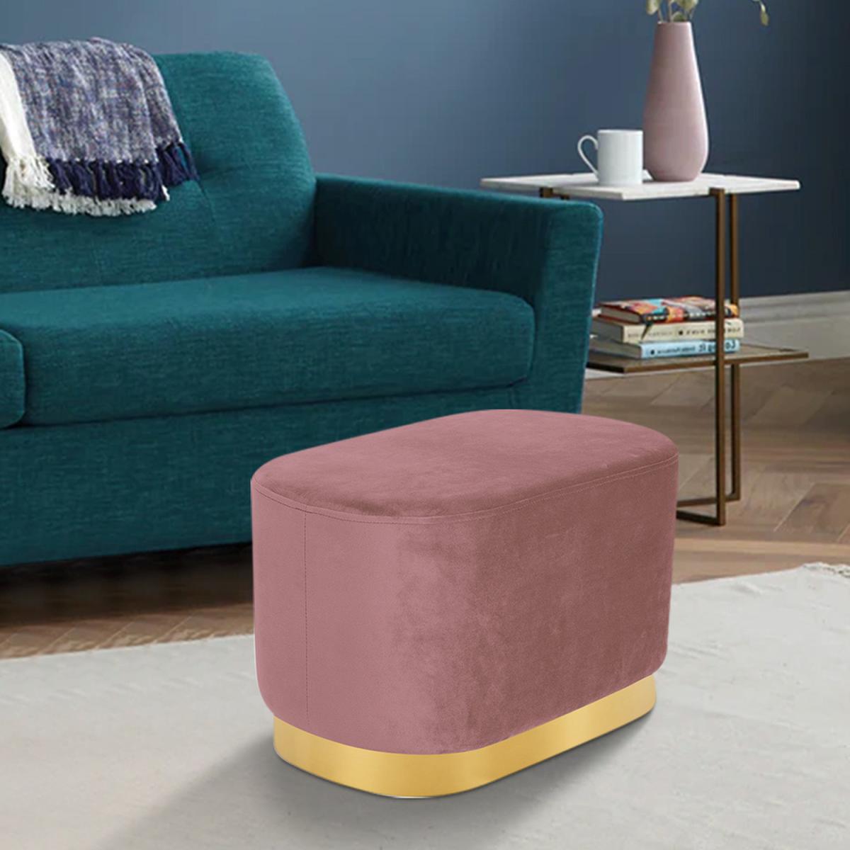 I love this pink oval bench for its contemporary shape and soft colour, which makes it a versatile piece for both modern and eclectic interiors. It works particularly well in dressing rooms, bedroom seating areas, or as a statement piece at the foot of a bed. To style it effectively, consider pairing with metallic or glass side tables to echo the gold base, or layering with plush cushions for added texture. Its compact size makes it practical for small spaces, and the muted pink adds a touch of warmth without overwhelming the room’s colour palette. Overall, it’s a stylish and functional addition that can elevate the feel of any space.