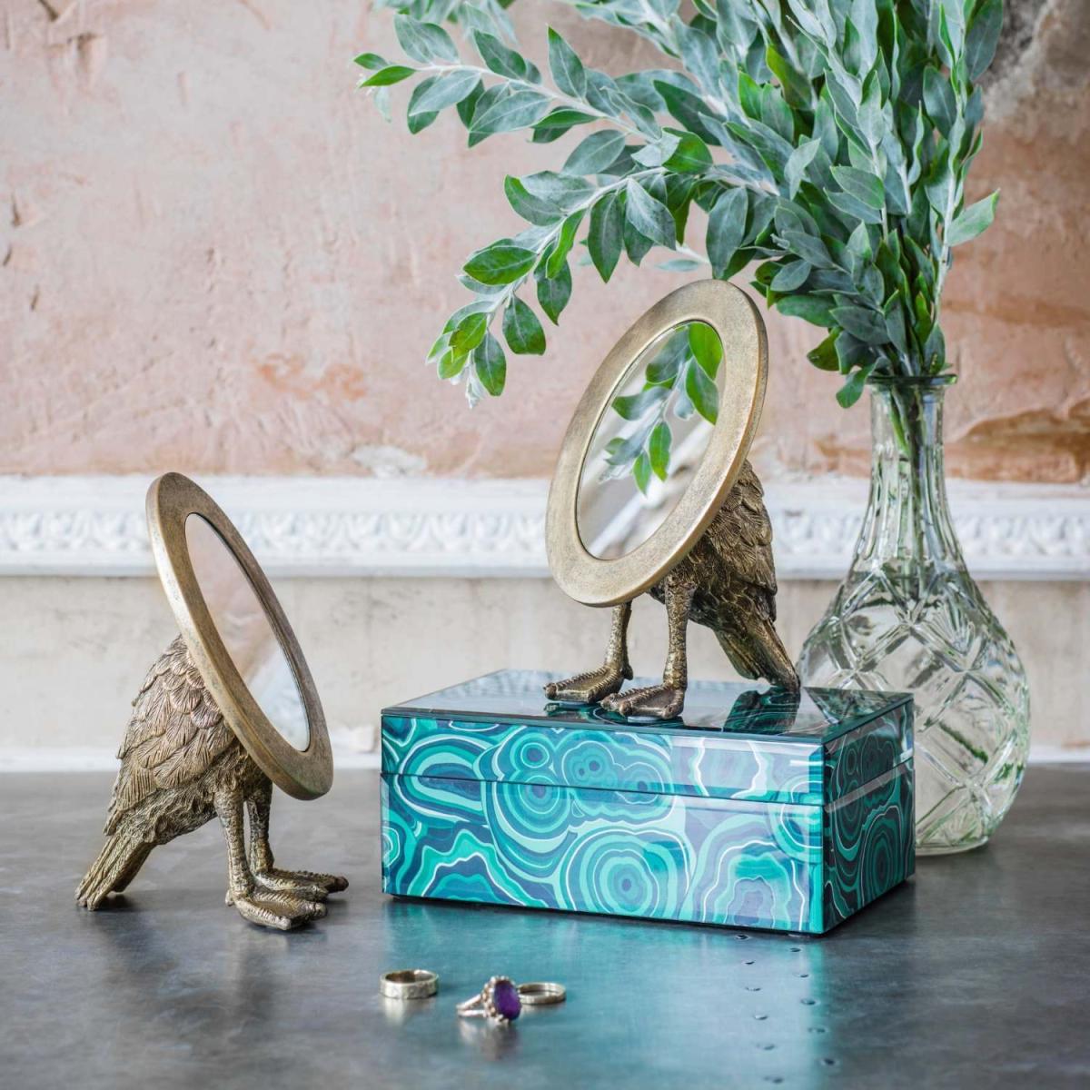 I love this little bird-shaped mirror for its playful yet contemporary vibe. It works especially well in eclectic, boho, or coastal interiors where quirky details add character. The oval shape offers a softer silhouette, making it a versatile addition whether placed on a sideboard or used as a dressing table accessory. Practical styling tips include pairing it with natural textures like rattan or linen, or contrasting it against bold, colourful backgrounds to make it stand out. Its compact size also makes it ideal for small spaces or to add a touch of personality to surface displays.