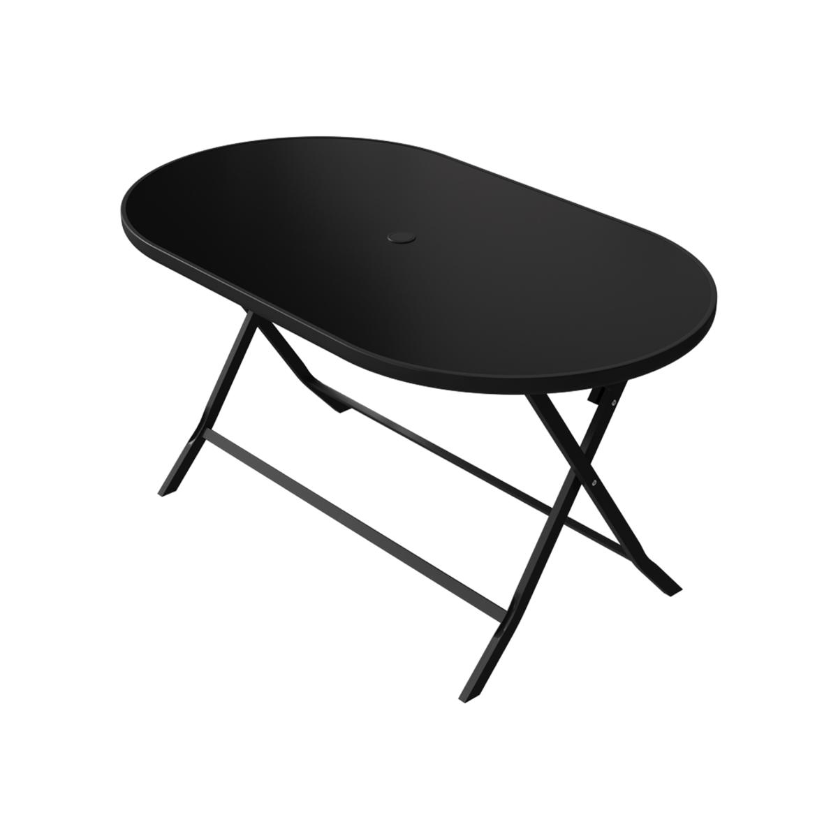 Oval Garden Metal Folding Table with Parasol Hole - Black