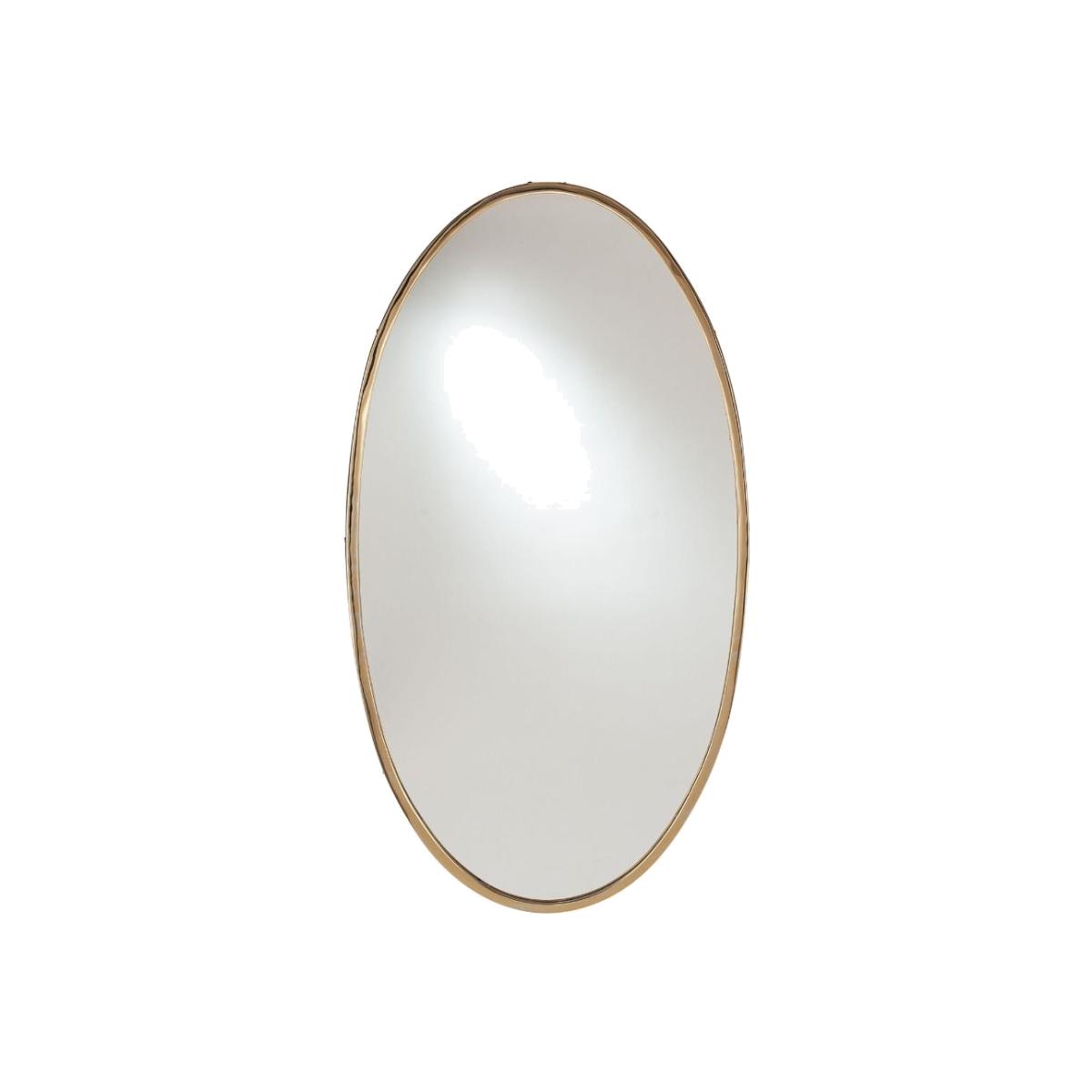 Minimalistic oval mirror boasting gold finish. Sleek in design the oval gold metal wall mirror will add a touch of class to any room. Perfect for both contemporary and traditional interiors, the mirror boasts an oval shape and gold finish. Ideal for use in hallways, lounges and bedrooms.