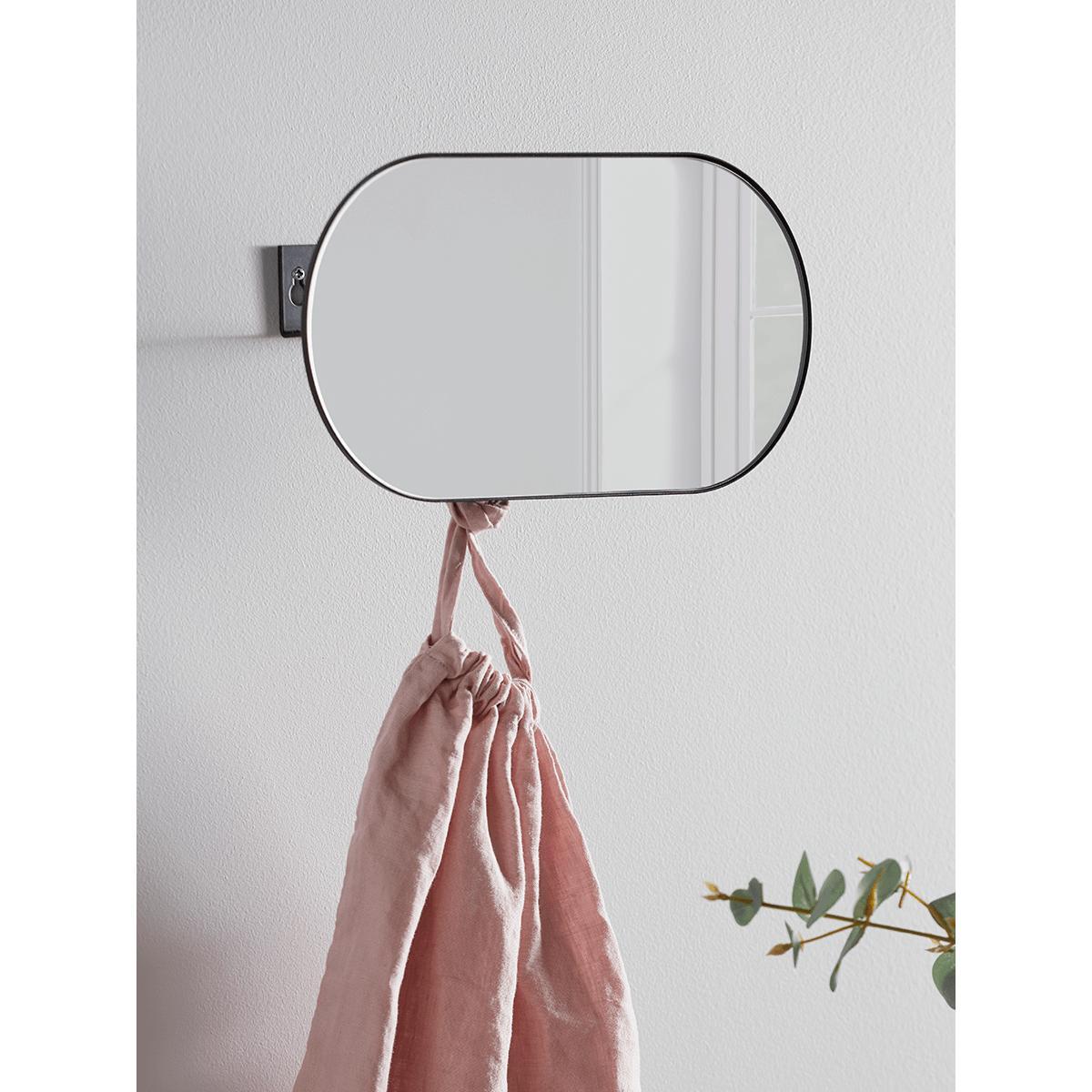 For those with a curated modern style our oval mirror is a wonderful hallway solution. The slender framed tablet mirror stands from the wall with hooks for hanging positioned behind, to keep the form clean.