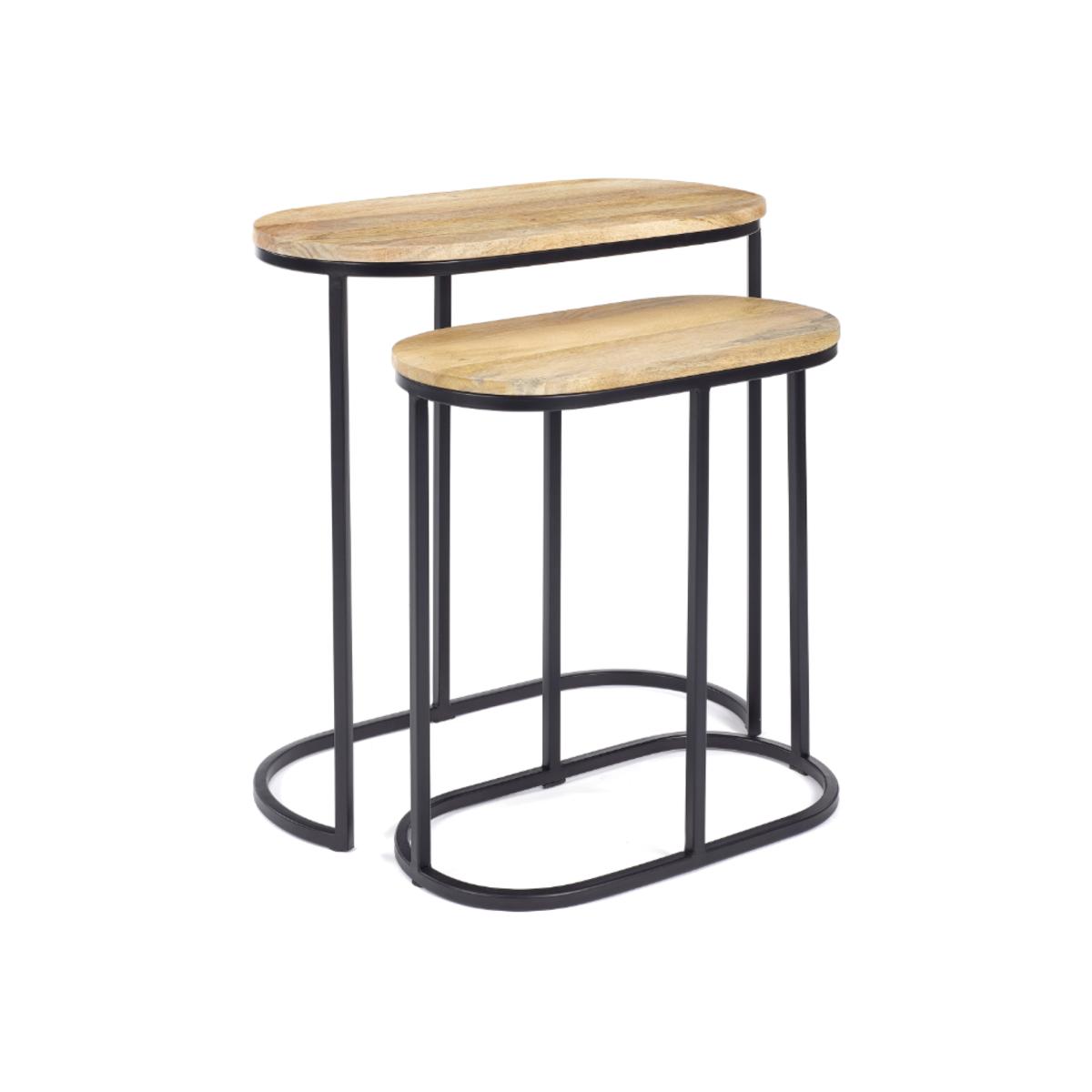 Add elegance and versatility to your living space with an oval nest of two tables designed for both function and style. The smooth oval shape offers a soft modern look that fits easily into any room. Perfect for compact living these tables can be used together or separately and neatly tucked away when not in use. Crafted from quality materials they provide a sturdy and stylish surface for drinks decor or everyday items. Enhance your home with this practical and eye catching nesting table set.