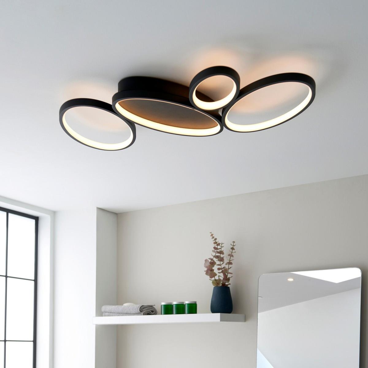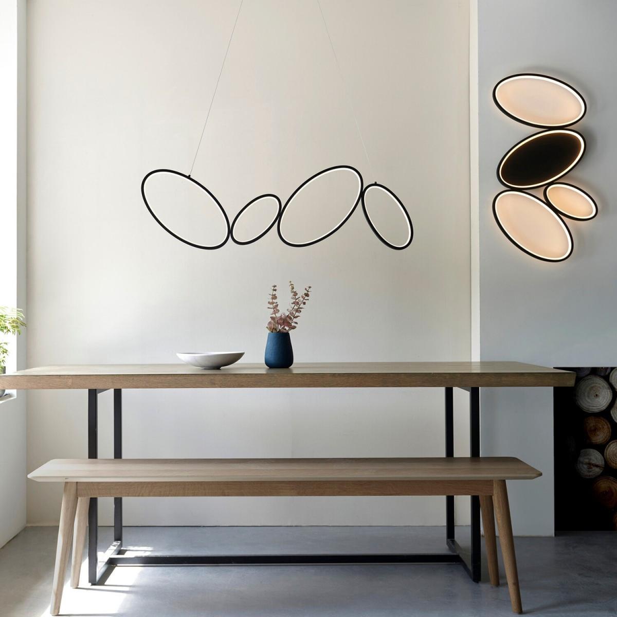 Ovals Modern Designer 4 Ring LED Wall Light Textured Black Finish - Textured Black & White Silicone