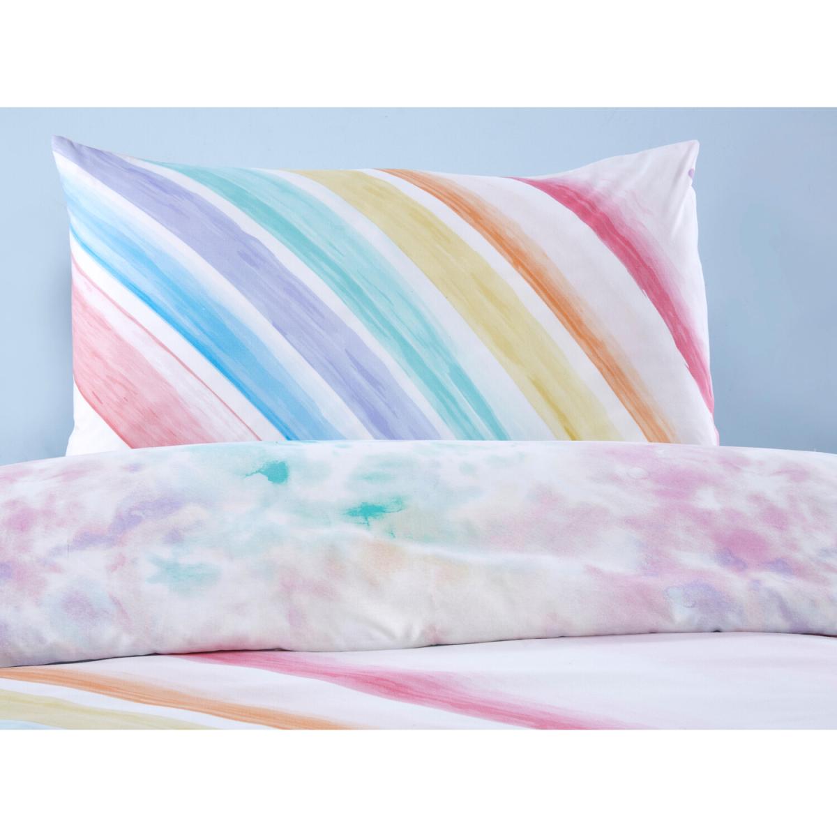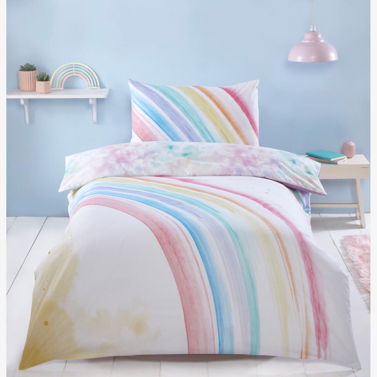 Add some bright colours to your bedroom with this Over The Rainbow Duvet Cover and Pillowcase Set. With a watercolour design, this single duvet set is bursting with vibrant colour, making it easy to match to any accessories! Ideal for a rainbow-themed room, this bedding is sure to bring a smile to your face.