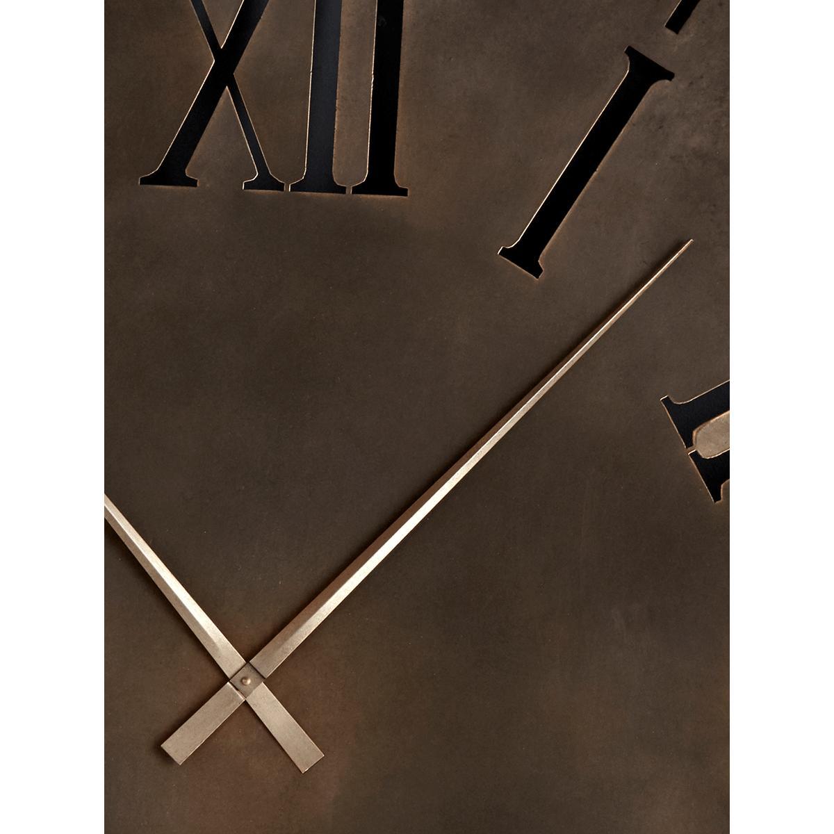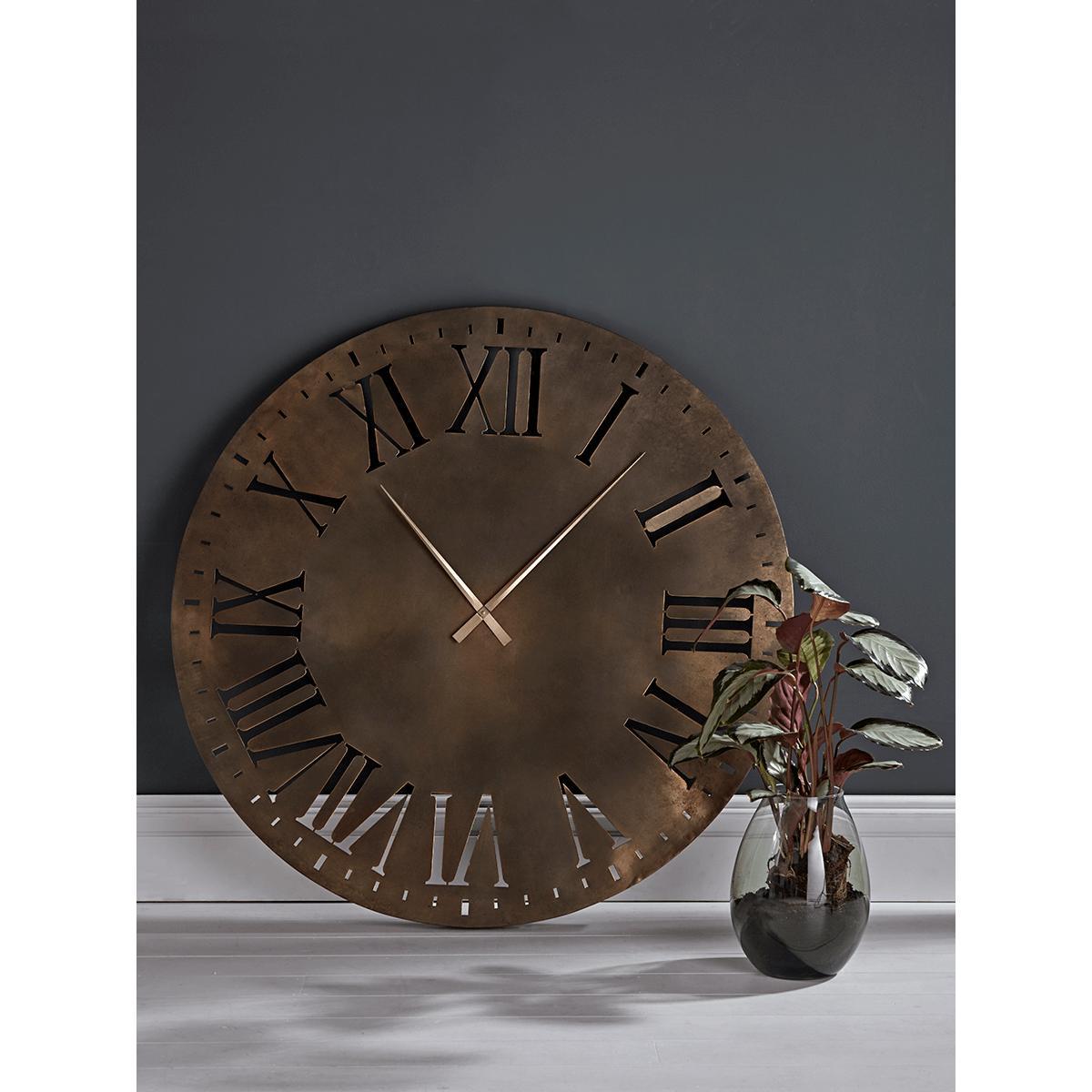 A true statement piece, our exquisite oversized clock features cut out Roman numeral style numbers, sleek gold hands and a burnished bronze finish. Lean against your wall for a contemporary look, or mount to create a fabulous feature in your living space.