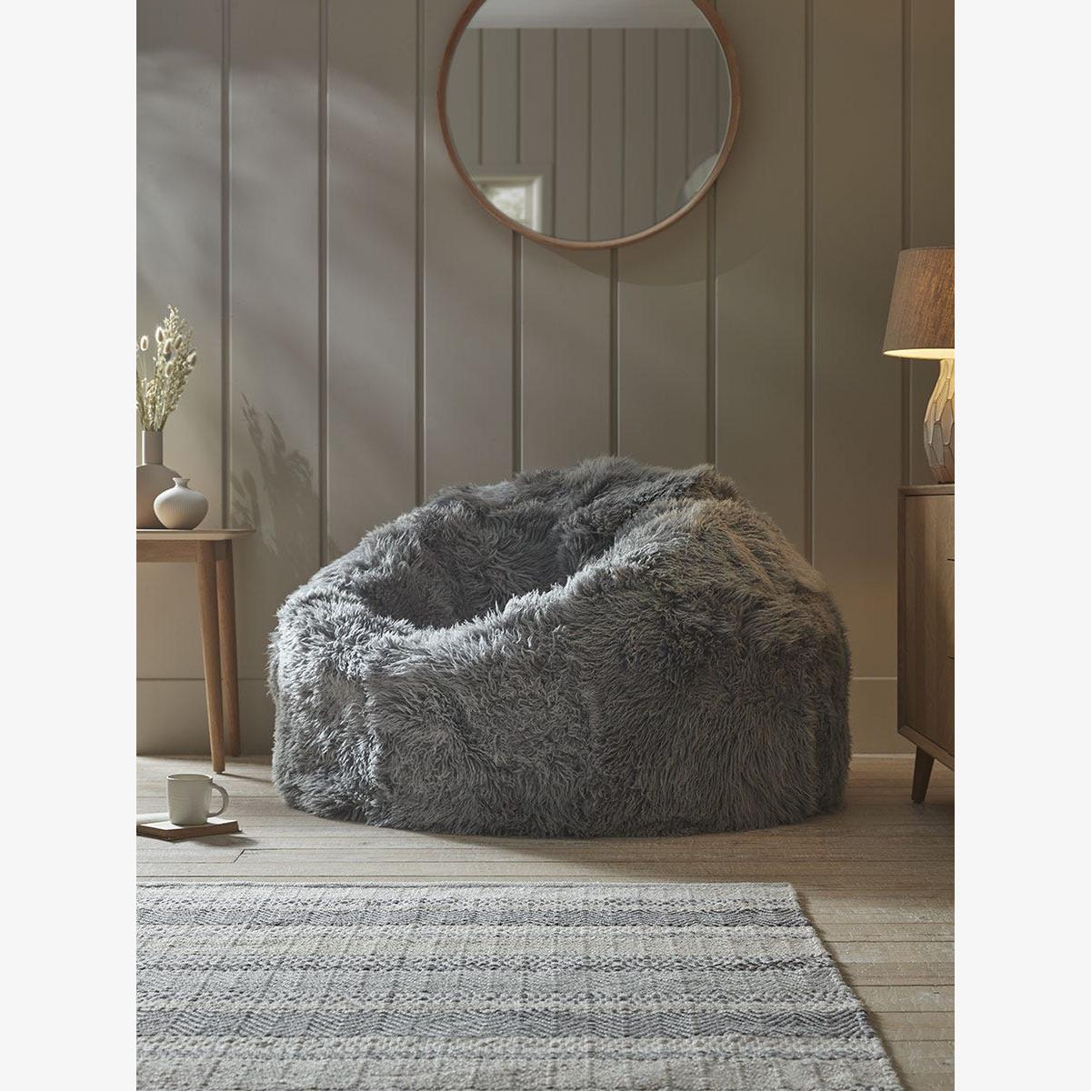 I love this oversized curly sheepskin beanbag for its cosy, inviting look and tactile appeal. It works particularly well in relaxed, contemporary interiors or where you want to add a touch of comfort without sacrificing style. It’s versatile enough to sit comfortably in living rooms, bedrooms, or even a reading nook, especially if you’re aiming for a laid-back vibe. When styling, try pairing it with neutral or muted tones to highlight its plush texture, and keep surrounding furniture simple to let the beanbag be the statement piece. Practical tips include placing it on a rug for extra warmth and making sure the space around it remains uncluttered for a clean, modern finish.