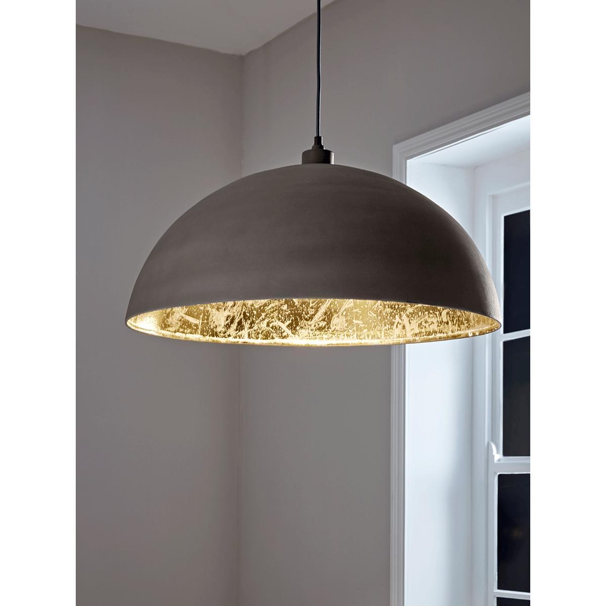 Crafted from iron in a matte grey finish and a gold leaf effect inner, our dome pendant light is sure to make an eye-catching statement, whether hung in your kitchen or dining room. The unique golden inner will catch the light and add warmth to your living space, while the grey exterior keeps this shade perfectly on trend.