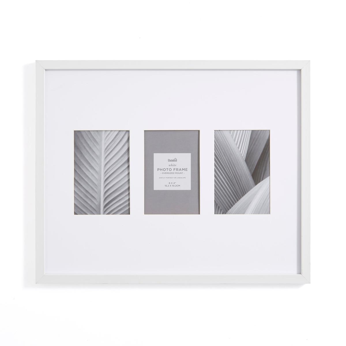 * Available across multiple colourways* Oversized, Stylish Frame* Fits Three Photos* 2 way hanging option Achieve sleek sophistication with the Oversized Mount Triple Photo Frame. This oversized frame fits three photos, creating a chic and timeless display. Its sleek design adds a touch of modern elegance to your space, making it the perfect backdrop for your special memories.