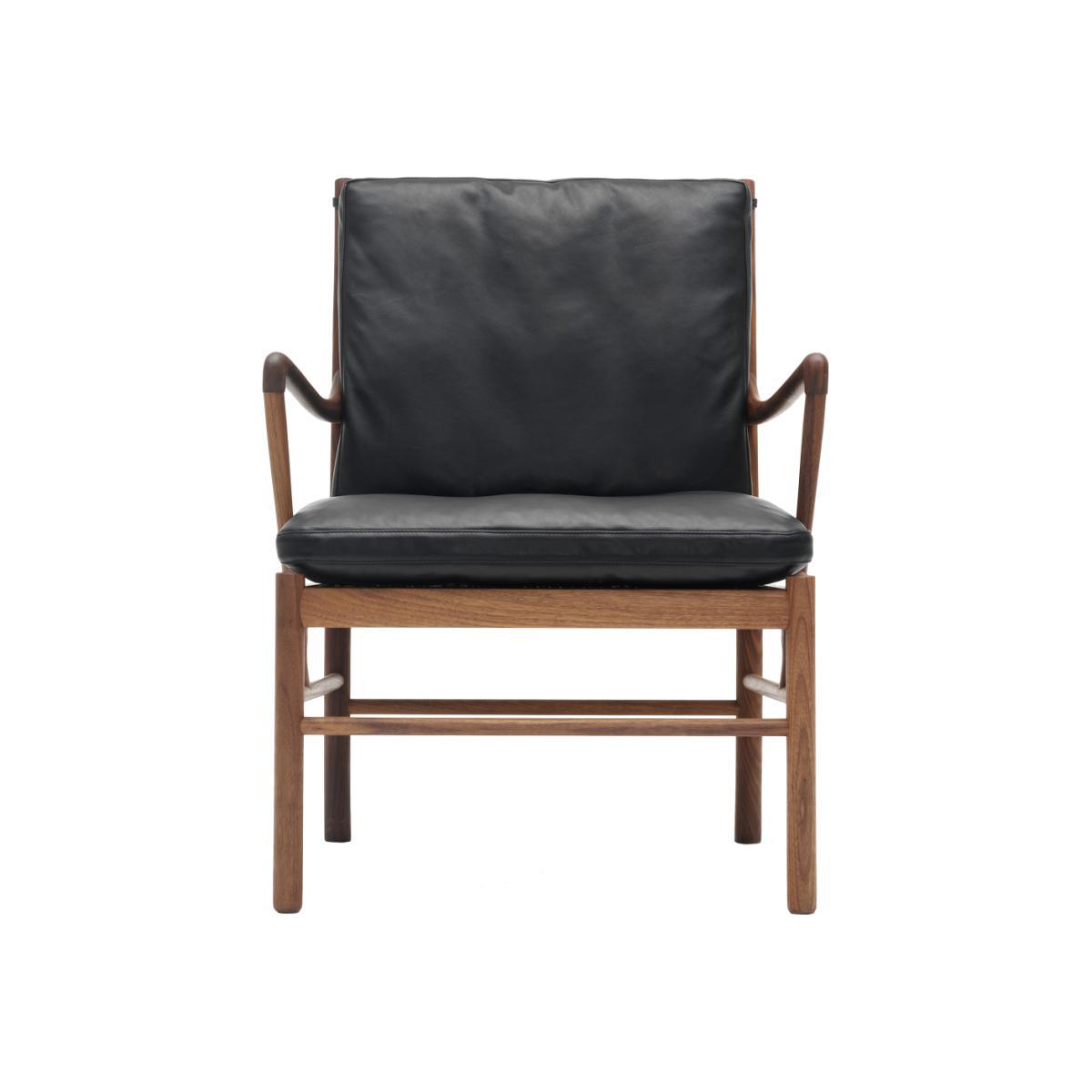 Re-released by Carl Hansen & Son, this beautiful walnut edition of the OW149 Colonial Armchair, originally designed by Ole Wanscher in 1949, would add an elegant touch to any contemporary interior. Designed with exquisite attention to detail, the fine elements of Wanscher's OW149 Colonial Armchair include the refined, slender armrests and the hand-woven cane seat support. Featuring a beautifully grained walnut body and supple dark leather upholstery, the OW149 Colonial Armchair is an impeccably finished classic design. Still manufactured to an intricate standard by prestigious collective Carl Hansen & Son, the OW149 Colonial Armchair in walnut and leather upholstery would be a perfect way of introducing iconic design into your décor.