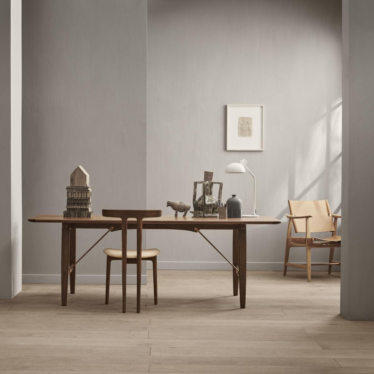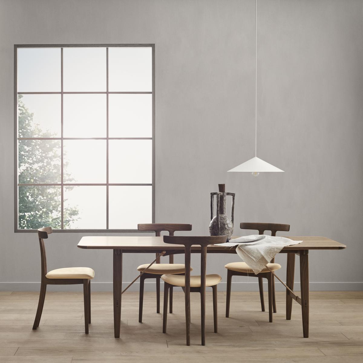 Since 1908, Carl Hansen & Søn has embodied the quintessence of Danish design by combining craftsmanship, quality and innovation. The brand brings together a collection of masterpieces of Scandinavian design: iconic items created by the greatest Danish designers. Handcrafted in Denmark, these pieces with their exceptional quality stand the test of time. With the strictest respect for the original models, Carl Hansen & Søn reissues the legends from the founders of Scandinavian design. Designed in 1958, the T-Chair is one of many models by designer Ole Wanscher that have become collector's items due to their timeless simplicity and beautiful finishes. A pioneer of Scandinavian design, Ole Wanscher (1903-1985) played a major role in the Danish design movement of the 20th century. His career was marked by a relentless pursuit for timeless elegance and functionality in furniture, principles that continue to influence contemporary designers around the world. The OW58 chair - T-Chair exemplifies Ole Wanscher's deep respect for materials, craftsmanship and functionality. The most striking detail of the chair is its T-shaped back, which blends seamlessly with the closely placed rear legs, giving the chair a three-legged appearance. The backrest has been perfectly designed to offer optimal ergonomics. Despite its lightweight expression, the T-Chair has a wide, padded seat that provides excellent comfort, making it ideal for dining room use. This sculptural piece embodies both classic and modern lines to give the chair a light, elegant appearance. Each T-Chair is handcrafted by skilled artisans, using the highest-quality materials. The smooth transitions in the joints of the wood are the result of careful processing and many hours of carpentry. The T-Chair is much more than just a piece of furniture: it's a functional work of art that embodies the heritage of Danish design.