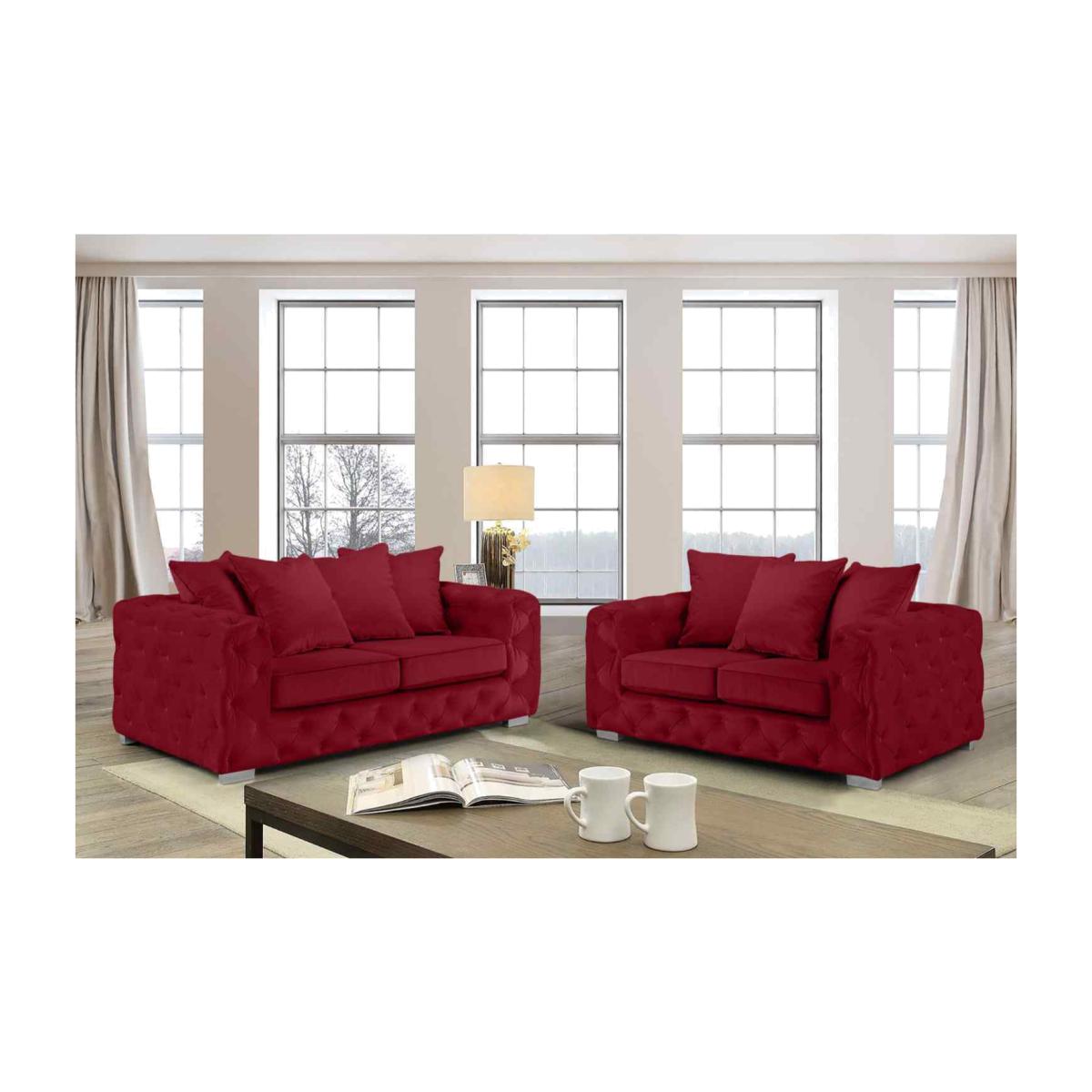 Owen 3 and 2 Seater Sofa Set in Plush Velour Velvet Fabric - Red