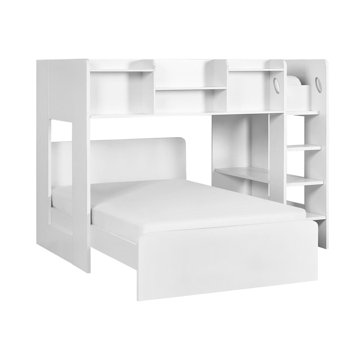 Experience the perfect blend of style, functionality, and fun with the Owen Bunk Bed in White. This versatile piece features a cosy single bed perched above a removable small double underbed, offering flexibility for sleepovers or extra lounging space. The built-in shelving, both inside and on the front, provides ample room to showcase decorative items, books, and toys, keeping your child's room organised and vibrant. The study ladder ensures easy access to the top bunk while adding a touch of modern design. Transform any room into a stylish haven of creativity and comfort. Mattress sold separately.