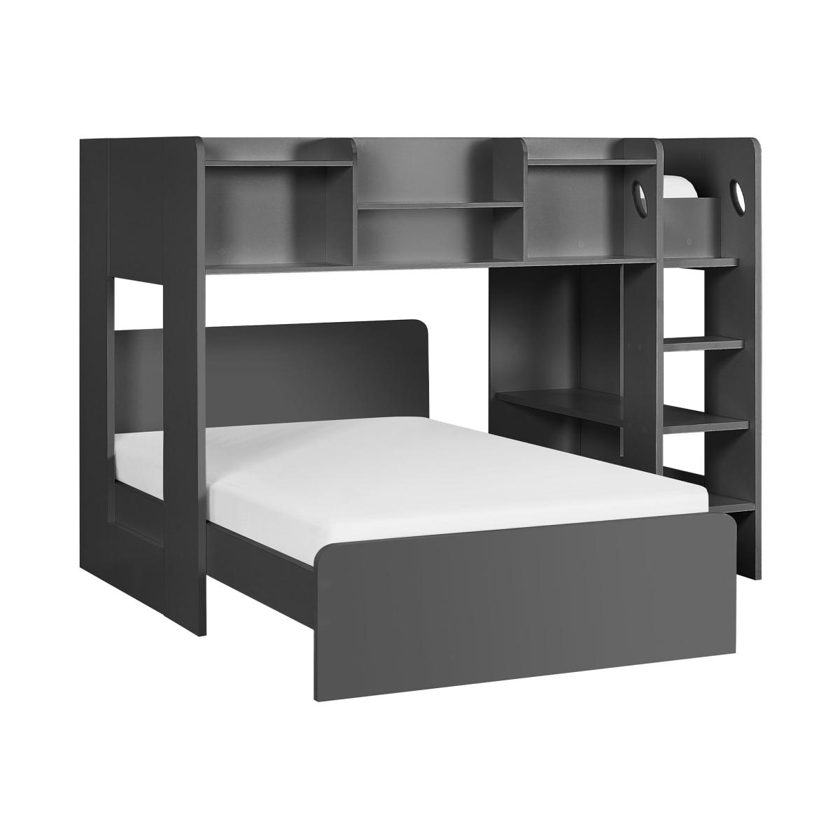 * 1 x Single and 1 x Small Double bed* Sturdy ladder* Built in storage Perfect for maximising space in smaller bedrooms, this bed frame's dual-level design offers a flexible setup that’s ideal for sleeping, lounging, or hosting guests. The built-in shelves provide convenient storage for books, toys, or decorative items, keeping everything neatly organised while adding a personal touch to the space. The included study ladder not only offers easy access to the sleeping area but also enhances the bed’s sleek, modern aesthetic.