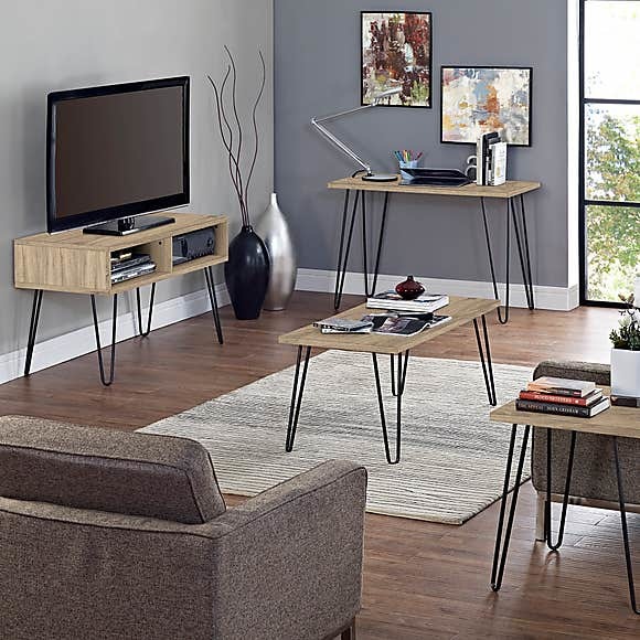 Brighten up your space with the Owen Retro Coffee Table. The black metal hairpin-style legs add a fun, retro feel, while the tabletop offers a clean industrial appearance. The sleek, minimalist design of the Coffee Table make it a perfect fit for small and medium-sized areas.