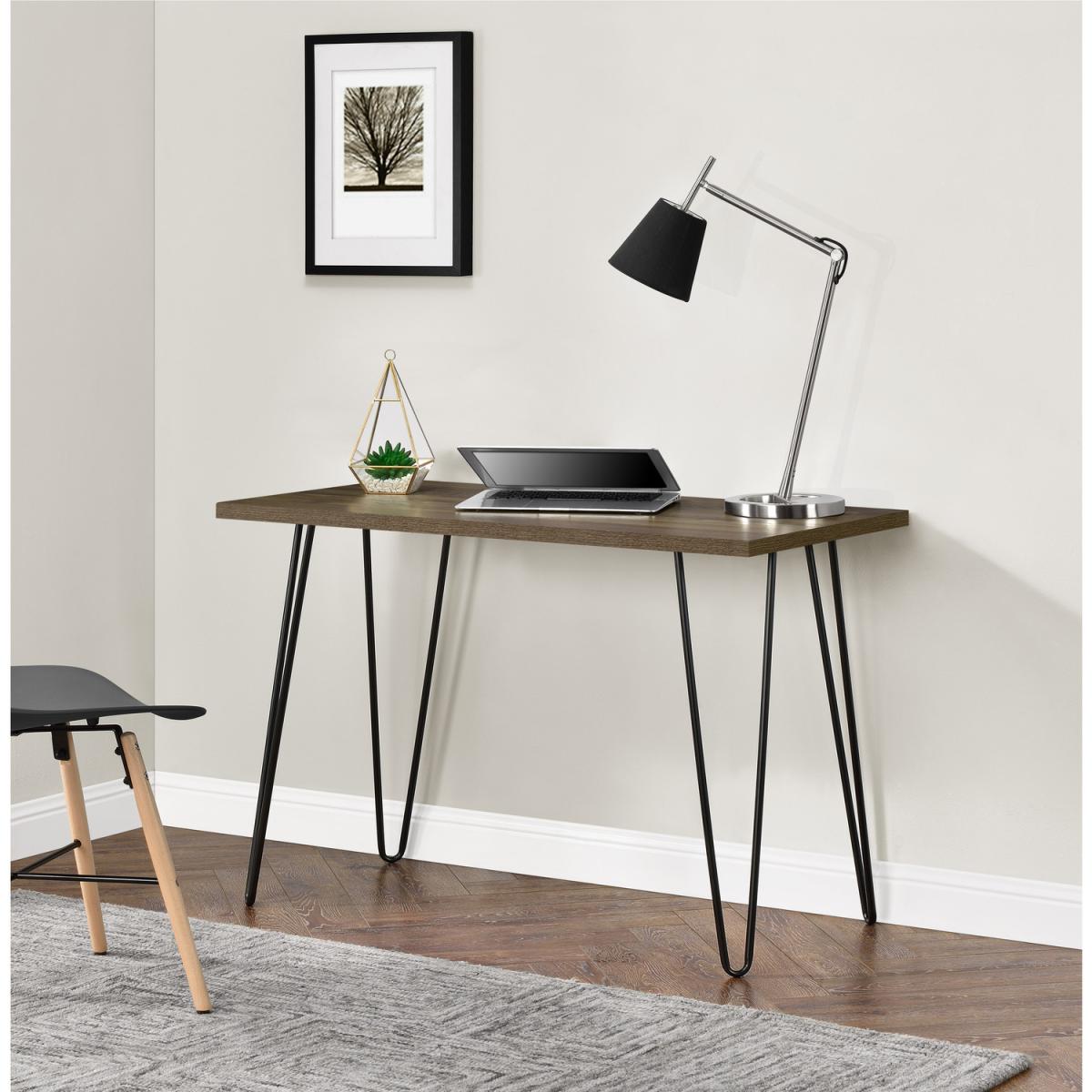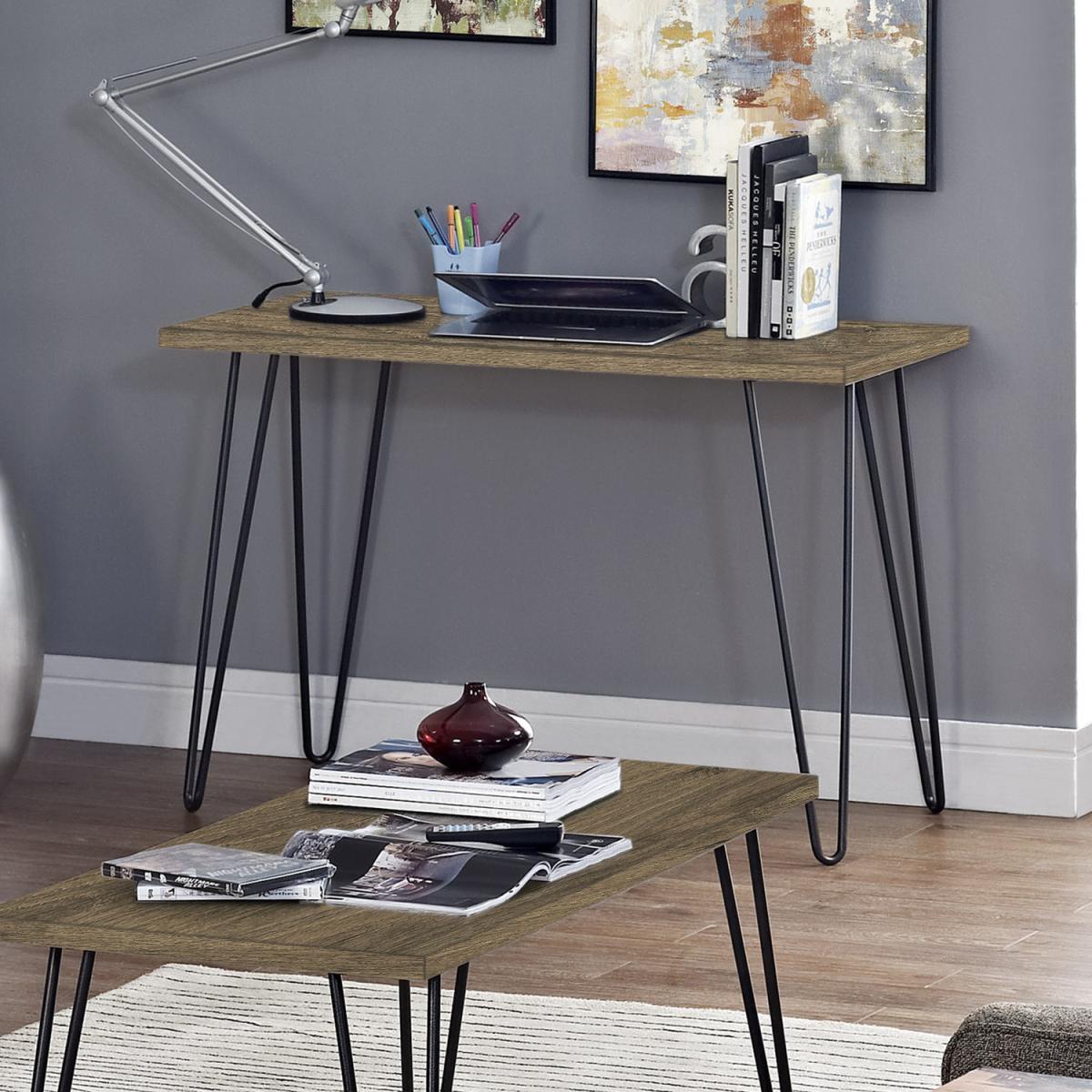 Create space in small and medium-sized rooms with the Owen Retro Desk. This Desk is made from laminated particleboard and features black metal hairpin legs reminiscent of mid-century design. The finish adds a classic touch you can place with any decor and style. This Desk is great for holding your laptop, important paperwork, desk lamp and family photos.