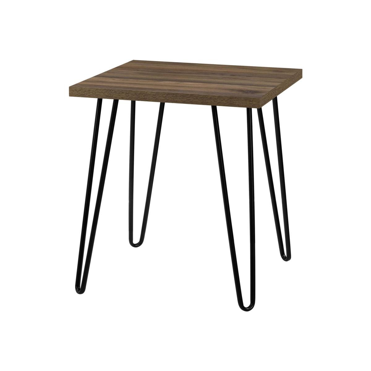 Give your living room, office or kitchen a modern, industrial feel with the Owen Retro End Table. Crafted with a slim profile, sleek, sturdy and compact, making it great for small to medium-sized rooms. The finish and black hairpin legs make this accent table look great in your room. Place your reading lamp, remotes or pictures on the tabletop to add style and organization to your space.