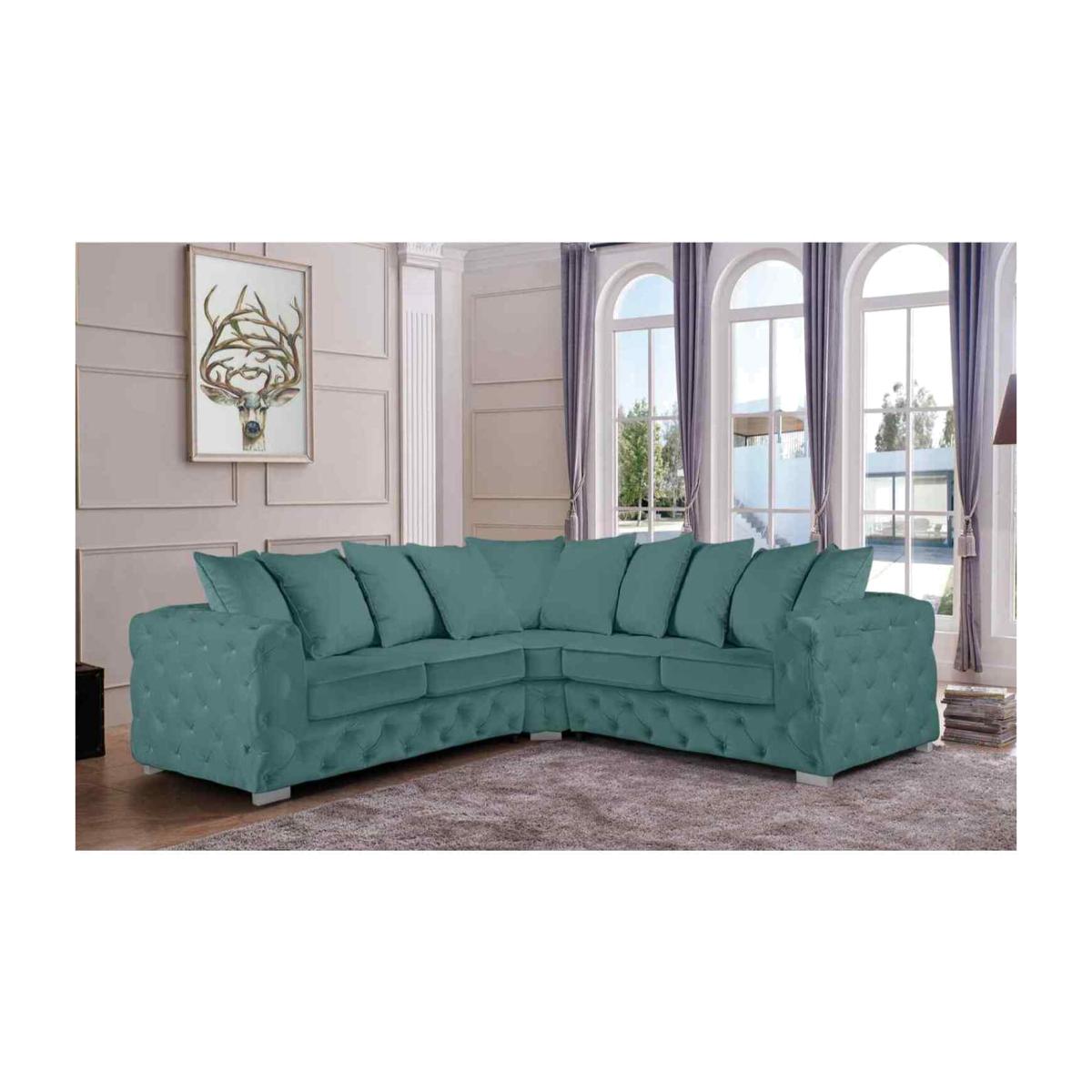 Owen Scatterback Corner Sofa in Plush Velour Velvet - Turquoise