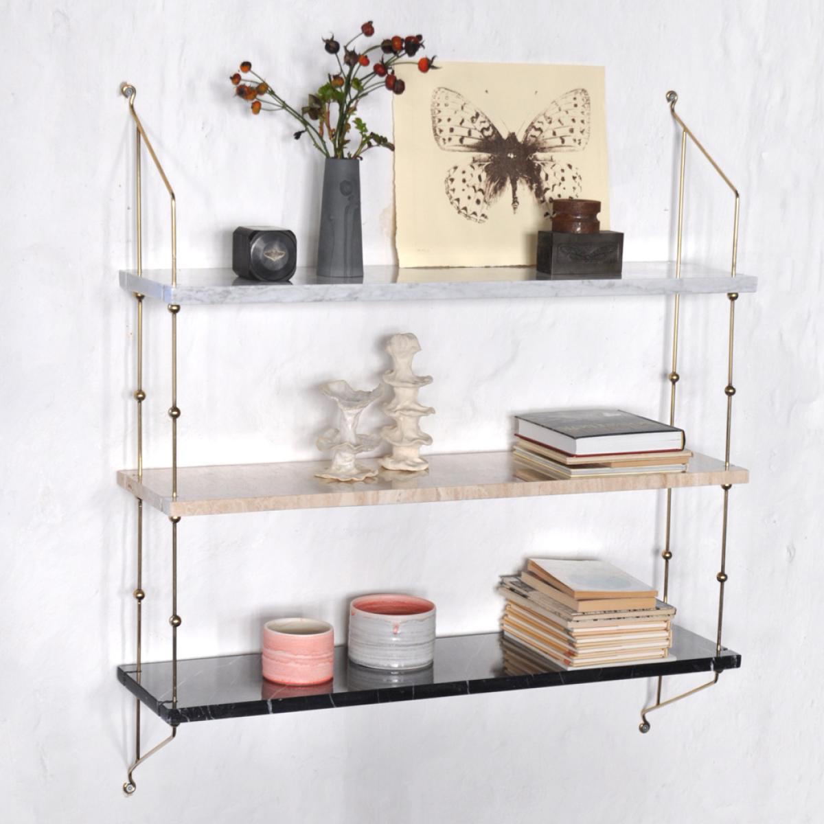 OX Denmarq Morse shelf marble white. frame in black lacquer
