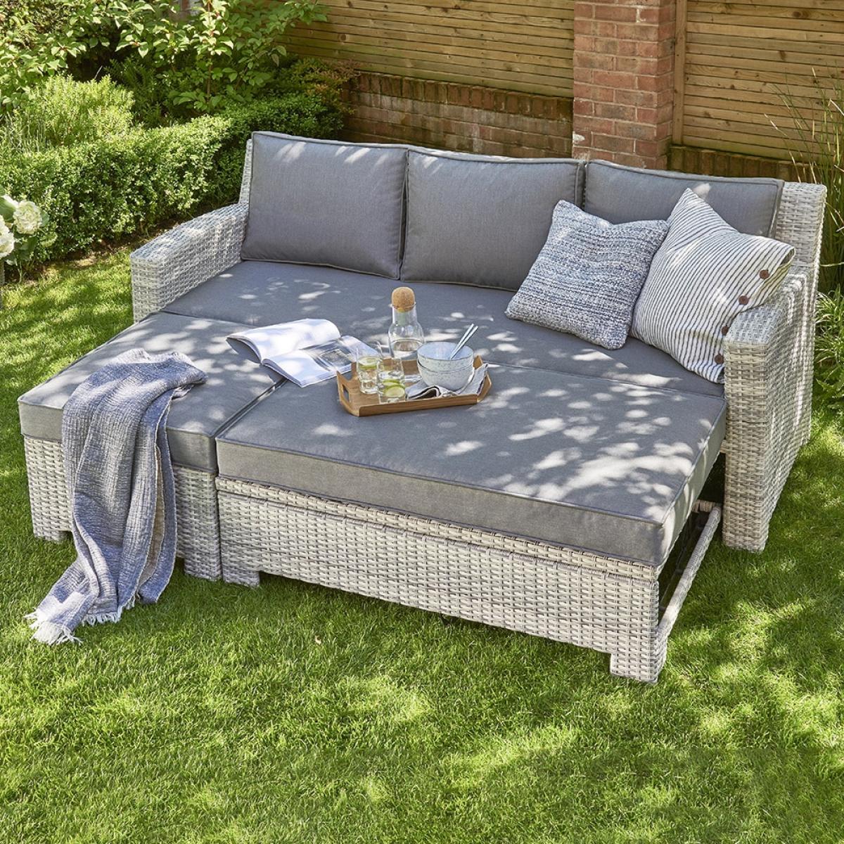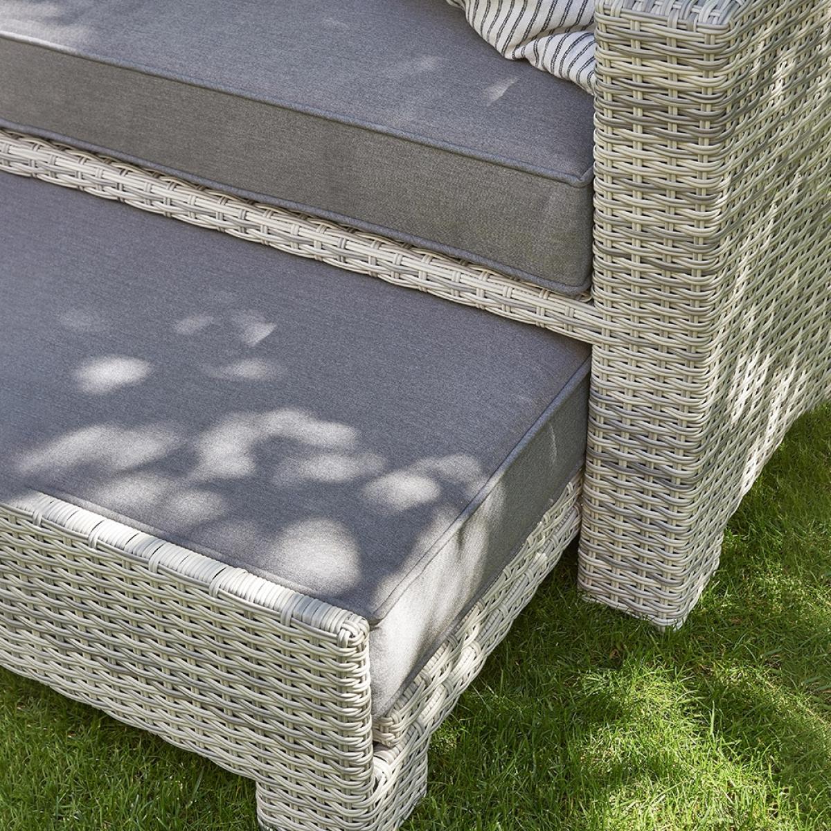 The Oxborough Pull Out Lounge Sofa from Norfolk Leisure will provide you with a perfect relaxation zone. The plush seat pads and back cushions will have you feeling content in no time. Whether used as a day to day sofa for friends and family to catch up over, or to be used with your loved one to take a moment to kick your feet up and enjoy a mid-afternoon nap. Simply pull out the ottoman and transform this beauty into the perfect day bed. Finished in a wide weave, when your outdoor furniture looks this good you'll want to spend every second outside!.
