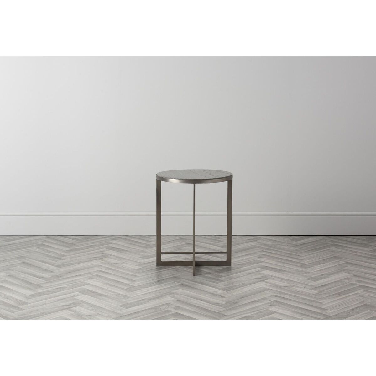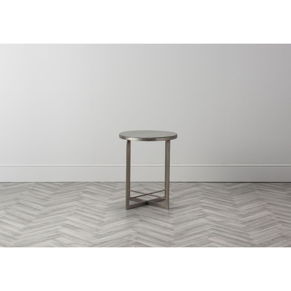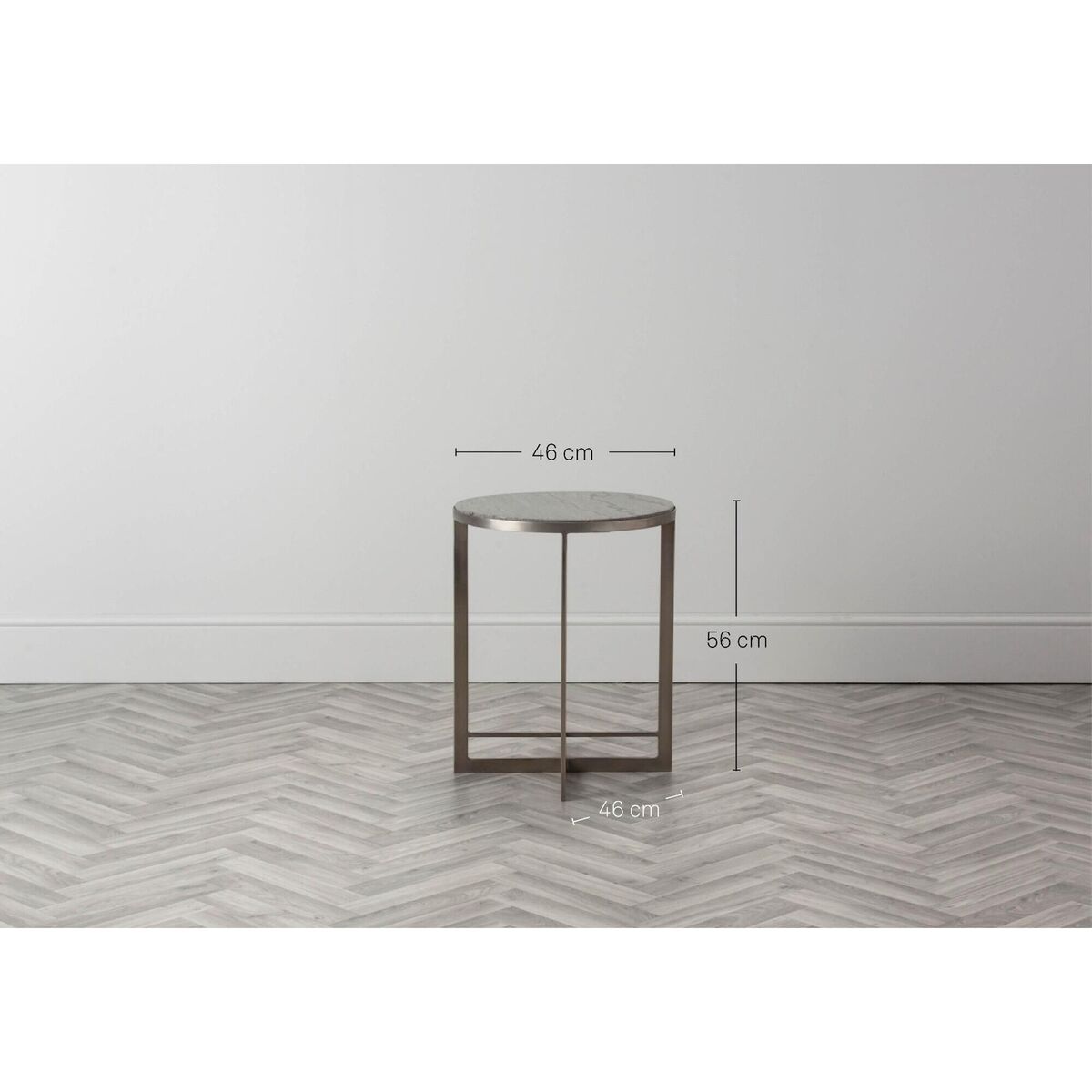 Introducing the Oxendan Silver Marble Side Table, a contemporary design with a stunning, smart look. The Oxendan range merges materials of an industrial nature into a contemporary shape - gorgeous, marble for the top and silver stained lacquer iron criss-cross base. The reflections of the Oxendan are simply stunning and while the top will shine with any natural light, the metallic base will beautifully balance it to make this gorgeous design fit into different types of decor.