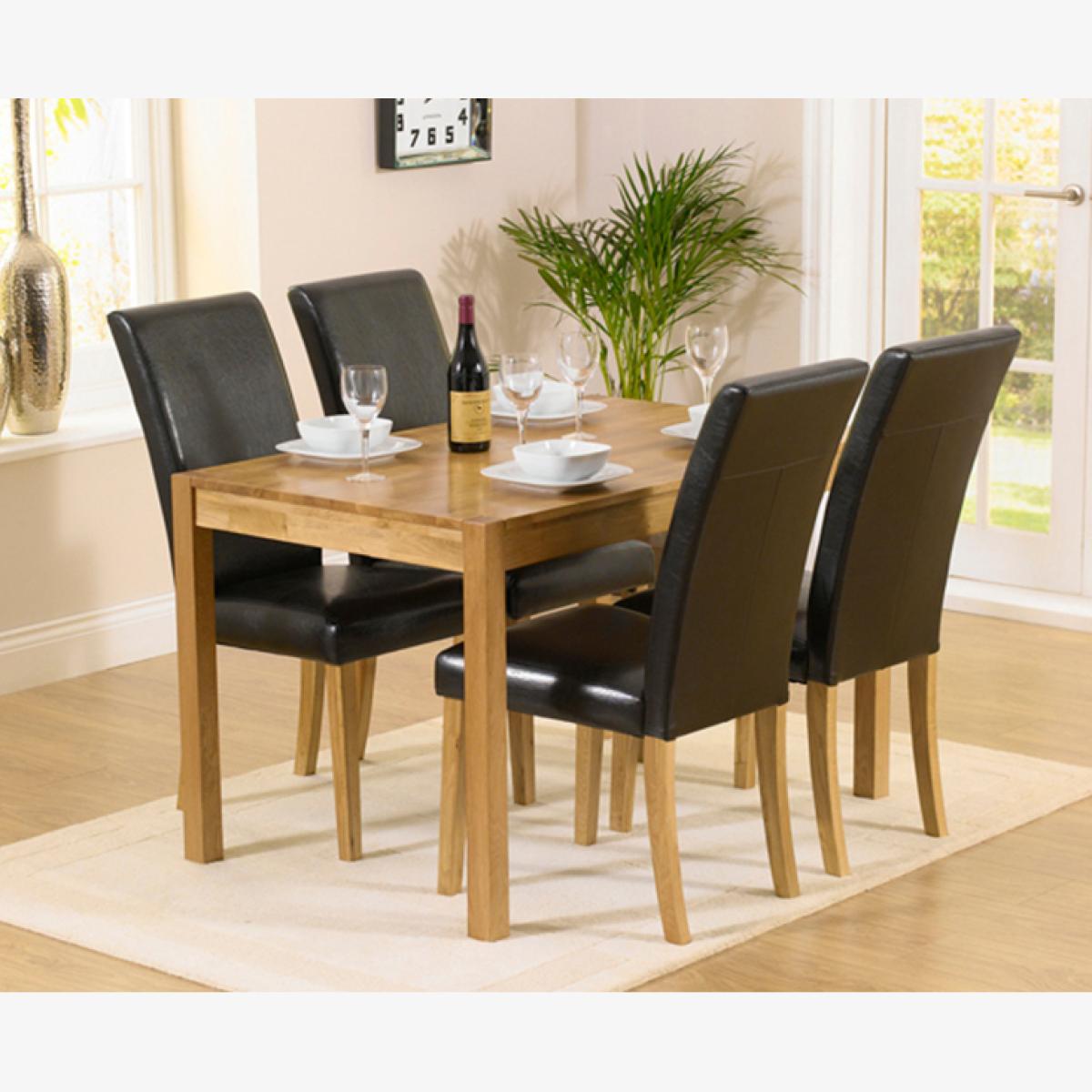 Oxford 120cm Solid Oak Dining Table With 4 Brown Albany Chairs