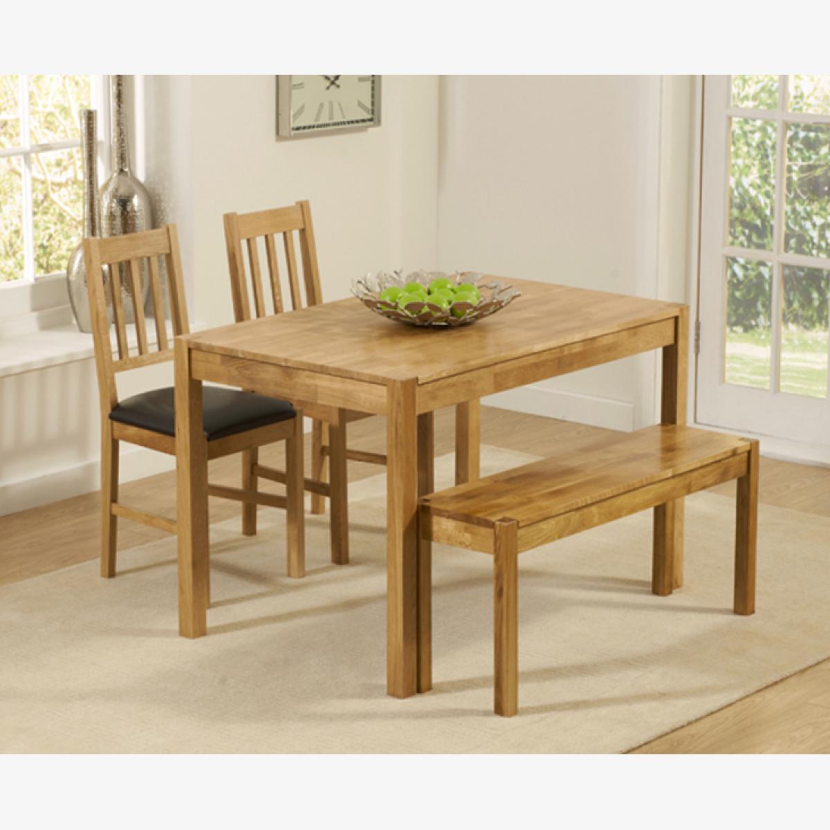 Oxford 120cm Solid Oak Dining Table With 4 Brown Oxford Chairs and 2 Oak Oxford Benches