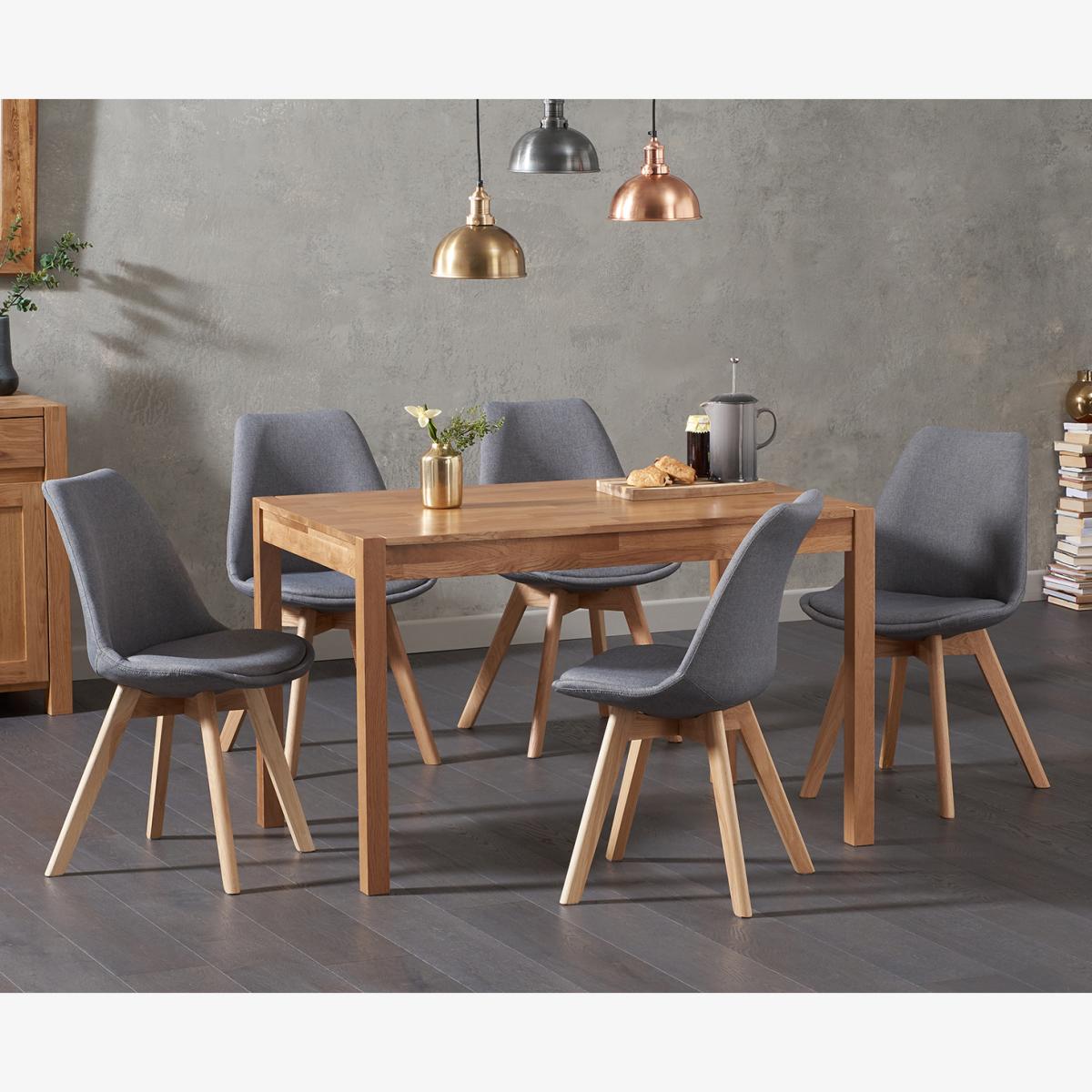 Oxford 120cm Solid Oak Dining Table With 6 Dark Grey Duke Fabric Chairs
