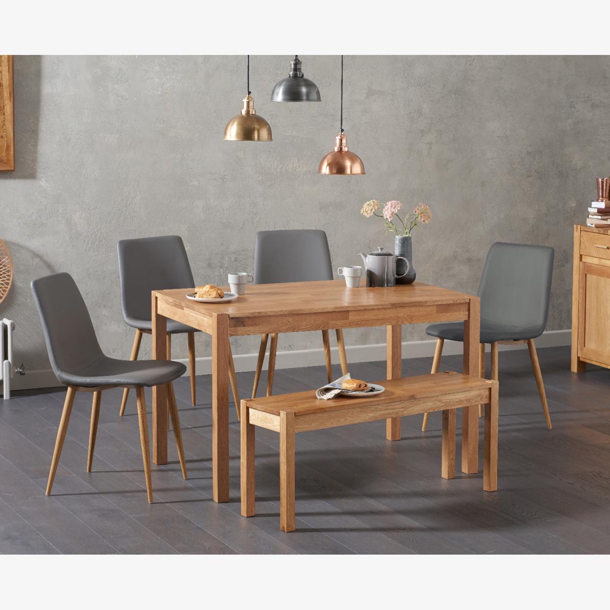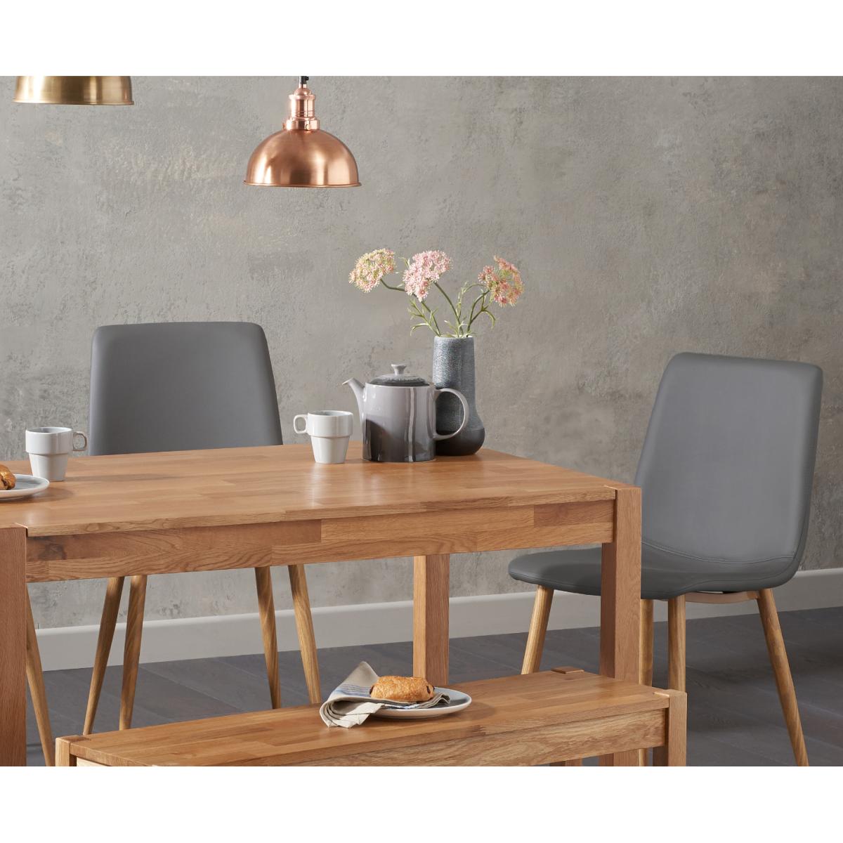 Oxford 120cm Solid Oak Table with 2 Grey Astrid Faux Leather Chairs and 1 York Bench