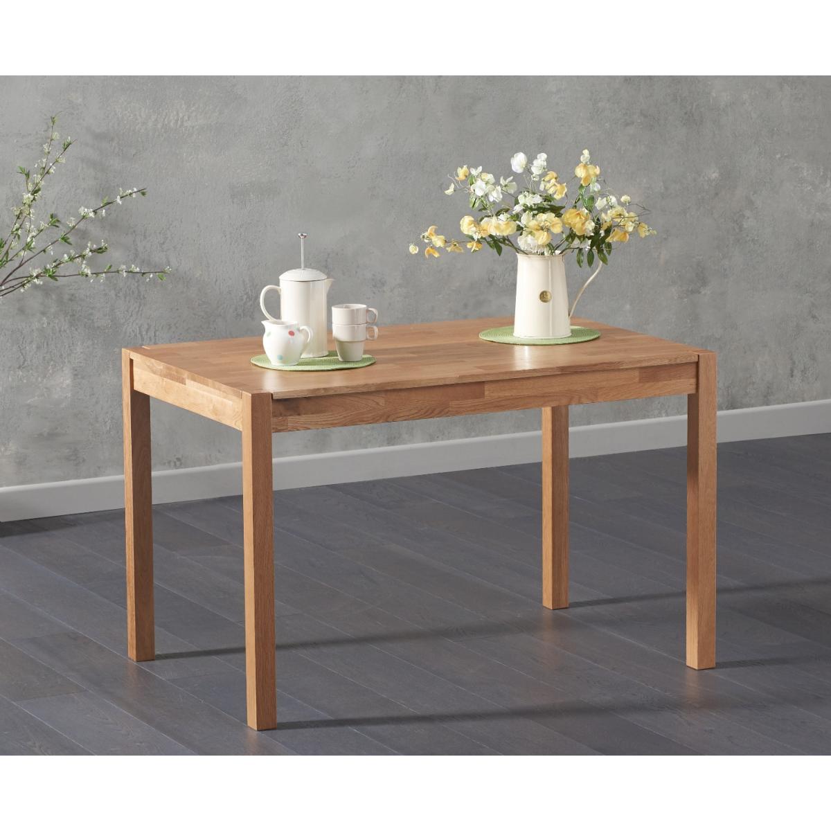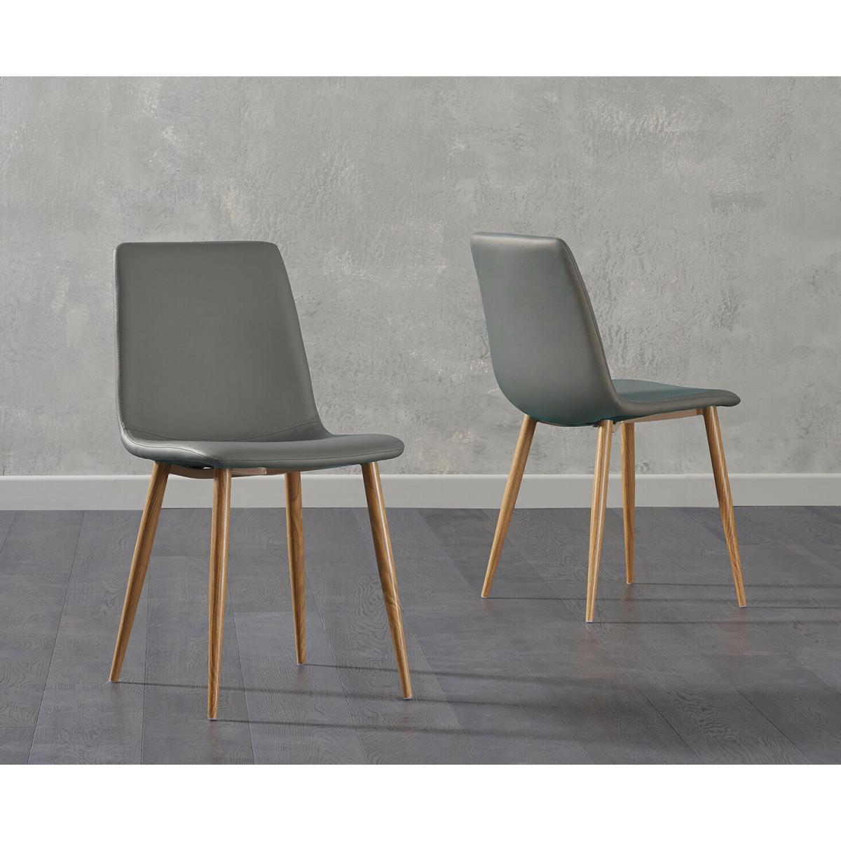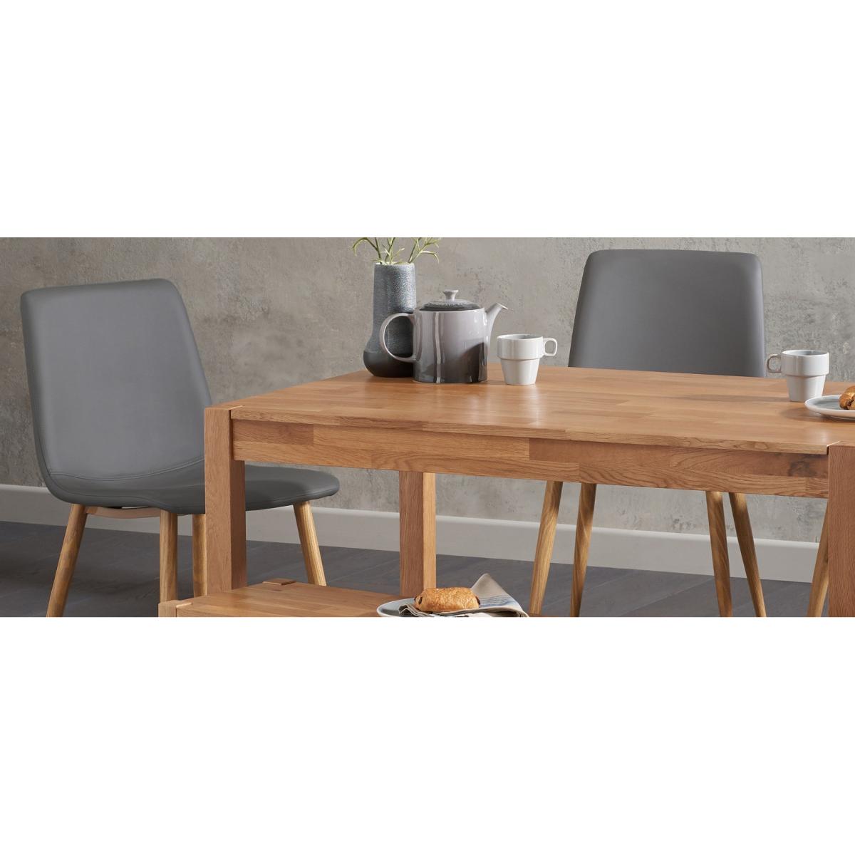 The Astrid faux leather chairs are a striking match for our 120cm solid oak dining table and solid oak bench.