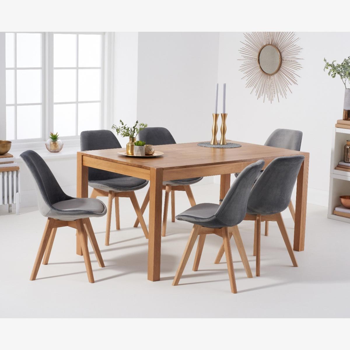 Oxford 150cm Solid Oak Dining Table With 8 Grey Orson Velvet Chairs