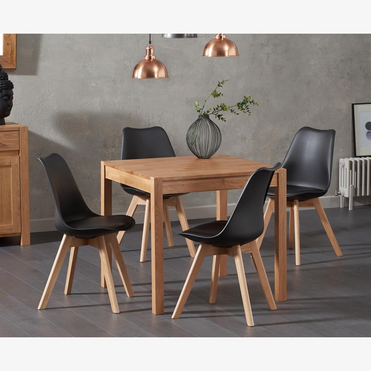 The Oxford dining table paired with the faux leather chairs offers a sleek, contemporary look that works well in modern, minimalist interiors or eclectic spaces. I love its solid oak construction for durability and natural warmth, making it a versatile focal point in both casual and more polished dining rooms. For styling, consider adding a simple runner or placemats to soften the overall look and incorporate colour through accessories like cushions or tableware. The contrast between the warm oak and the black chairs makes it easy to play with different colour schemes, from muted tones to bold accents, ensuring the set fits seamlessly into various interior styles.