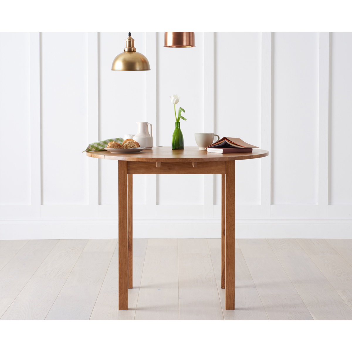 Stylish and practical, the Oxford 90cm Solid Oak Extending Dining Table is ideal for kitchens and dining rooms. The space saving dining table seats 2 diners and extends to comfortably seat 4.Chic and versatile, the extending dining table has been carefully crafted from resilient solid oak and features a smooth table top with a subtle finger jointed design. Complete with elegant yet durable legs, the table extends via classic drop leaf extensions. The Oxford 90cm Solid Oak Extending Dining Table is complete with a clear protective lacquered finish.