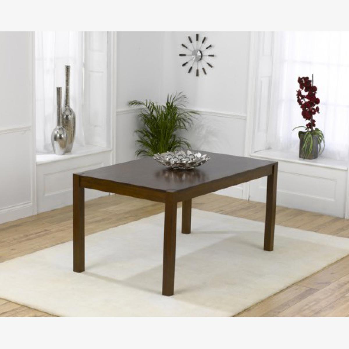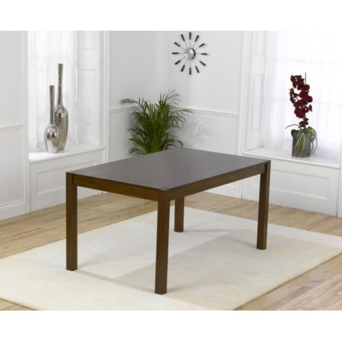 I love this dark solid oak table for its versatility and timeless appeal. Its clean lines and rich finish make it suitable for both modern and traditional interiors, especially in contemporary or minimalist spaces. In a neutral or monochrome scheme, it adds warmth and depth without overpowering the room. To style it effectively, opt for a simple centrepiece like a statement bowl or a small, curated collection of accessories. Pairing it with wooden or mixed-material chairs can create a balanced look, while placing it on a light, soft rug can help anchor the space and add visual softness. This table is practical and durable, making it an excellent choice for everyday family dining or more formal gatherings.